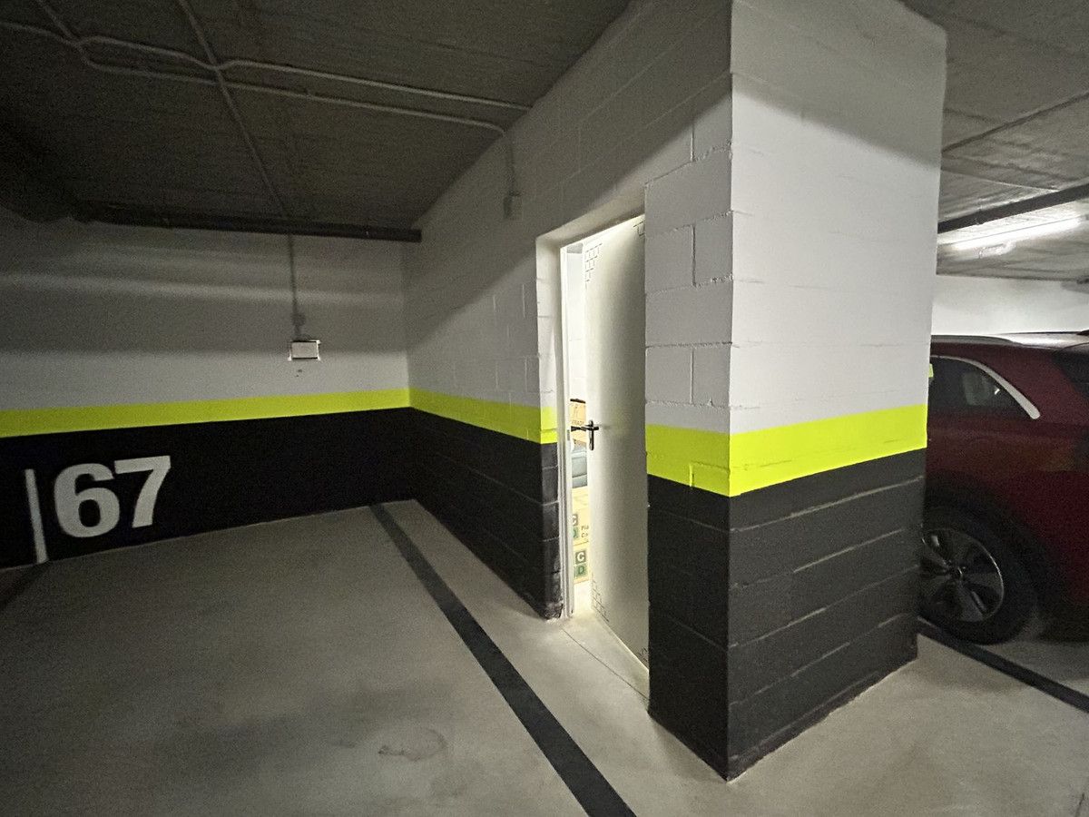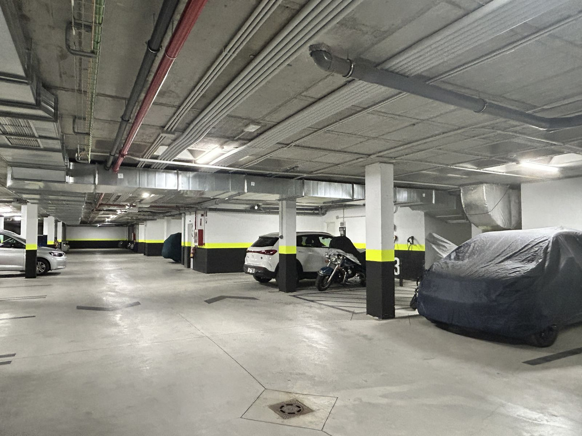 The property includes two parking spaces, separated by a practical 5 m² storage room. One of the spaces is equipped with an electric vehicle charger.