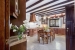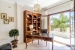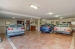 1st, the living-dining room with a fireplace, and from this living room to the porch with a dining table and views of the garden and pool;