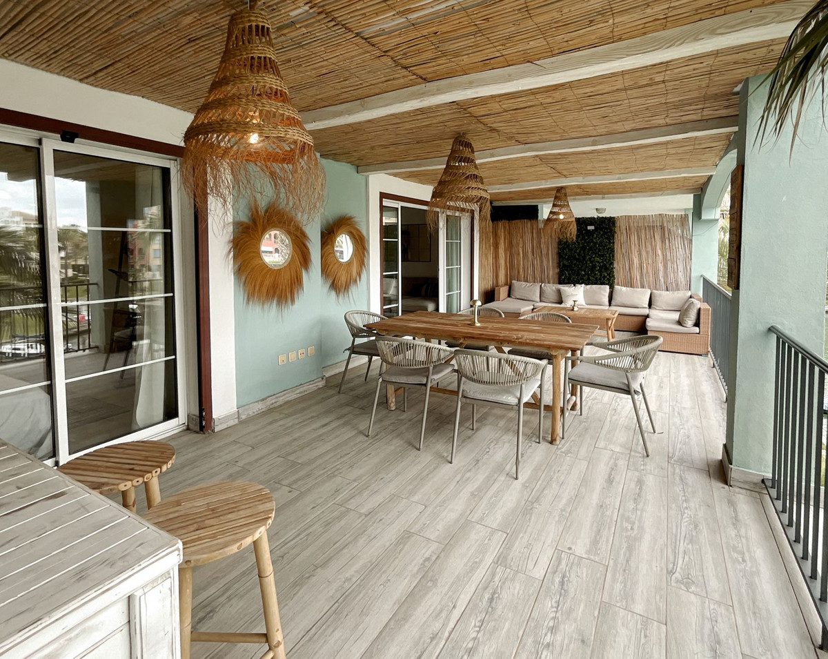 The covered terrace offers 10 linear meters of panoramic views over the marina, allowing you to enjoy cool afternoons and glamorous drinks even on the hottest summer days.