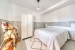 The main residence flows across several levels, starting with a bright, fully equipped kitchen, garage access, and an open-plan living and dining space that leads onto a generous terrace overlooking the Mediterranean Sea. Three bedrooms are conveniently located on this level, including a master suite with dressing room, en-suite bathroom and direct terrace access. Downstairs, a flexible office space opens into the guest apartment, which leads out to an expansive garden level with a private pool, bbq area, and multiple sun-drenched terraces, perfect for al fresco living and laid-back luxury. additional storage and a versatile area offer endless possibilities, whether you want to create a gym, studio or extra guest space.