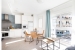 As you step inside, you'll be greeted by an inviting open-plan layout that seamlessly integrates the living, dining, and kitchen areas. The large windows flood the space with natural light, creating a bright and airy atmosphere. The contemporary kitchen is fully equipped, making it perfect for preparing meals to enjoy on the spacious private rooftop terrace. The well-appointed bedroom offers a cozy retreat and plenty of closet space. A modern bathroom boasts stylish finishes and a newly installed shower enclosure. The apartment also comes with a valuable storage room included in the price, enhancing your convenience.