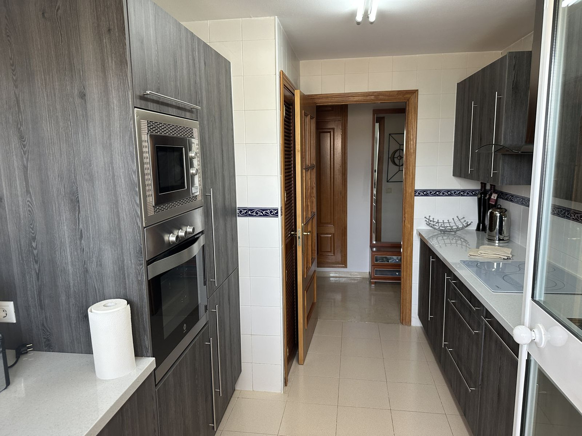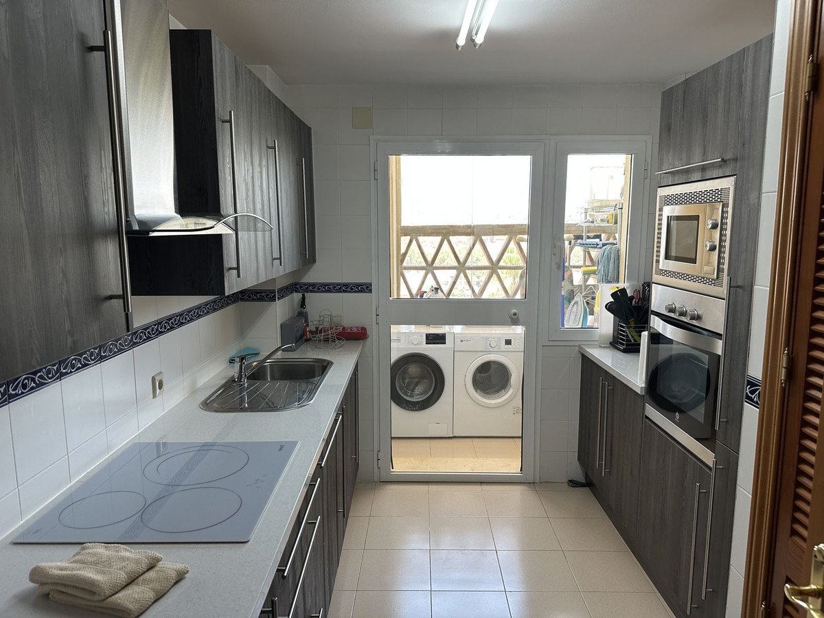 As you enter the apartment, on the right is a fully fitted kitchen. Off the kitchen is a laundry / utility room with views over to Mijas Pueblo mountain.