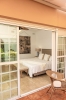 Ground floor: guest toilet, a bright living room with fireplace, fully fitted kitchen, and access to a charming private patio with a small pool, leading directly to the lush tropical communal garden with a large shared swimming pool.