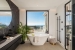 La suite principale, située au premier étage, est un véritable havre de paix. Elle dispose d'une luxueuse salle de bains privative avec baignoire îlot, offrant une vue imprenable sur la mer, d'un accès direct à une terrasse privée et d'un vaste dressing. Deux autres chambres avec salle de bains privative à ce niveau offrent davantage de confort et d'intimité.