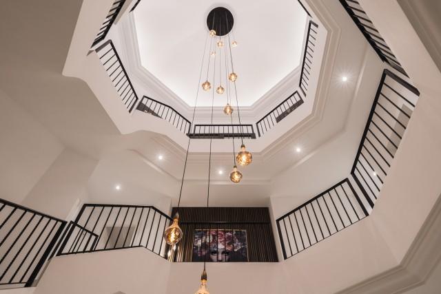 Dès votre arrivée, vous serez accueilli par un hall d'entrée majestueux, orné d'un imposant escalier en colimaçon et d'un lustre saisissant, qui soulignent immédiatement le caractère raffiné de la maison. Le rez-de-chaussée offre un spacieux espace salon-salle à manger ouvert avec vue panoramique sur la mer, s'ouvrant sur une cuisine design avec îlot central et salon convivial. Les pièces supplémentaires à ce niveau comprennent un cellier, un bureau, une chambre d'amis avec salle de bains privative et une salle polyvalente.