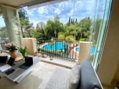 Welcome to this beautifully situated ground floor apartment in the sought-after Embrujo Playa complex, ideally located between Puerto Banús and San Pedro de Alcántara, just a few minutes’ walk from the beach. This prime location offers the best of both worlds – the glamour and energy of Puerto Banús to the east, and the charming, more traditional atmosphere of San Pedro to the west, both within easy walking distance. You can enjoy a leisurely stroll along the stunning beachfront promenade, easily accessed from the complex, with shops, restaurants, and beach clubs just moments away.