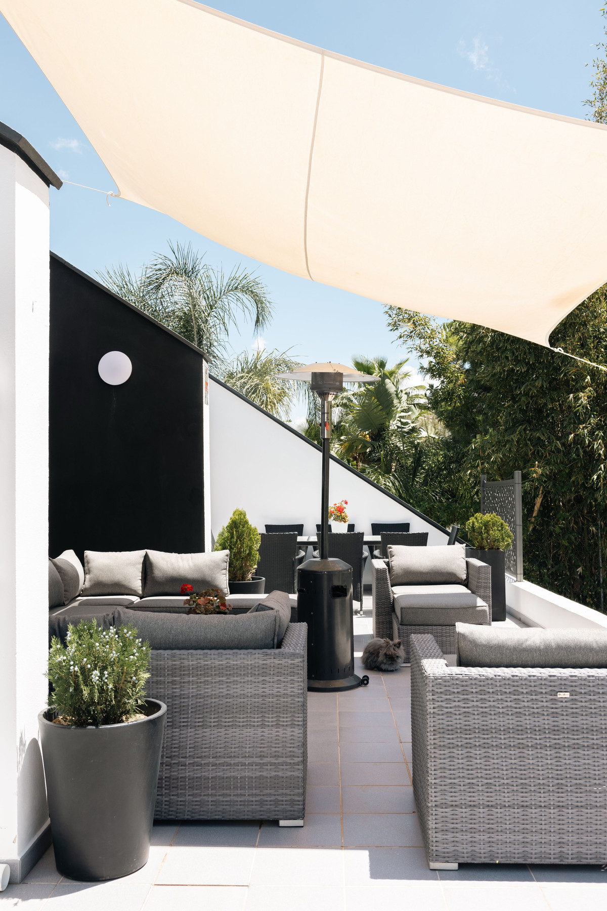 3 sunny terraces for dining and relaxing