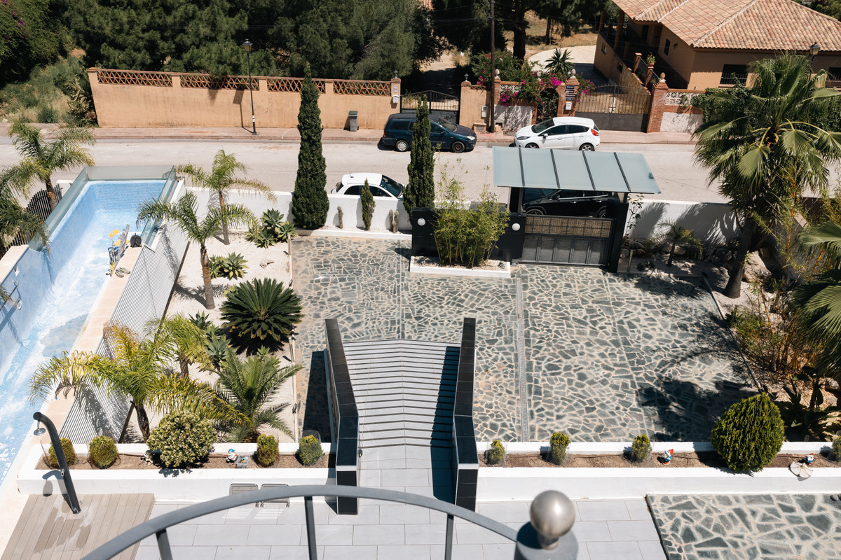The villa is just 15 minutes from Málaga airport and 20 minutes from the coast and city centre, with access to a nearby social club offering padel and pickleball courts.