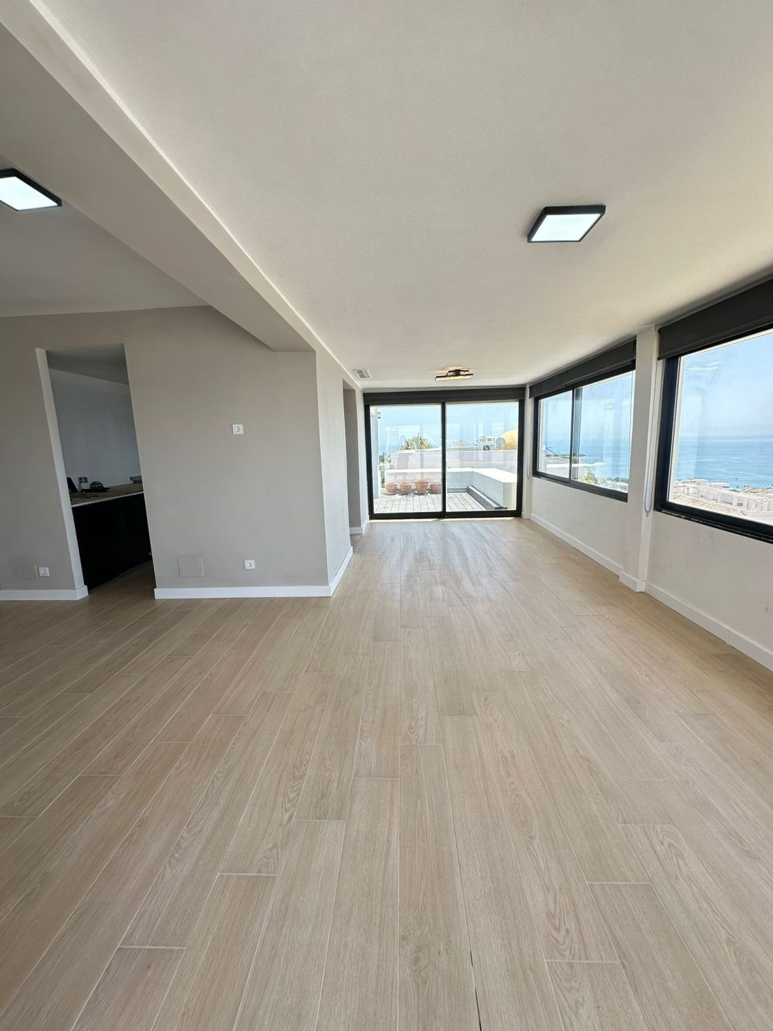 We offer this wonderful penthouse for sale in the coastal town of Mijas, province of Málaga. Located in a gated community with a communal pool and well-maintained landscaped areas, this apartment will make your stay a healthy experience, filling you with vitality and good humor. 17 km from the center of Málaga city, it will provide you with access to all the services and facilities you may need (shops, supermarkets, sports, educational, and health centers, public transportation, hospitality and catering services, government offices, and leisure facilities, such as the Miraflores Golf Course (1.7 km) or Torre Nueva Beach (2 km), among others. This wonderful home is located on a single floor and is located in the penthouse of a residential building. This first-floor apartment, with no elevator, occupies an exclusive wing of the floor, ensuring privacy as it is not shared with neighbors. It has a constructed area of 115 m², distributed among: 3 bedrooms with built-in wardrobes, a separate kitchen, two full bathrooms (one en suite), and a spacious living-dining room with access to a 22 m² terrace. This spacious area, which seems to divide the terrace in two, is located inside the living room. It features large windows and large glass doors, from which you can enjoy the beautiful 360º panoramic sea views in any season, regardless of the weather (it is sunny for most of the day). You can also spend unforgettable moments with your loved ones enjoying the beneficial Mediterranean climate on the terrace on summer nights.