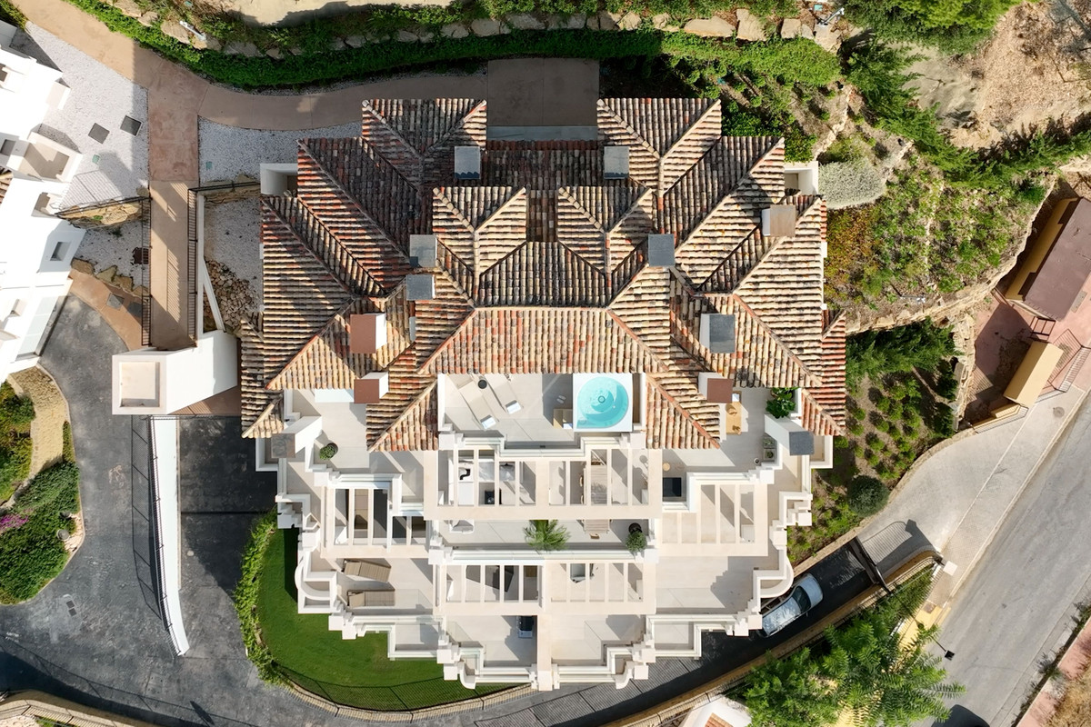 Located in the exclusive gated community of 9 Lions Residences above Puerto Banus, this corner duplex penthouse offers complete privacy, breathtaking sea views, and the feel of a private villa – without the maintenance.Enjoy sun-filled living across two levels, with three en-suite bedrooms, floor-to-ceiling windows, and expansive south-facing terraces. The master suite occupies the upper floor, with its own solarium and Drop Jacuzzi.This home was purchased new from the developer and has been owned by only one family, ensuring it’s been carefully maintained.High-end finishes include Gaggenau appliances and Villeroy & Boch bathrooms. Direct elevator access from the garage brings you to your private floor with secured entry.The community offers 24/7 security, concierge service, heated pools, gym, saunas, and lush gardens. Out of 53 residences, only nine are duplex penthouses – making this a truly rare find.Interior 247 m² | Terraces 128 m² | Private Garage (3 cars) 83 m² | Storage 10.6 m²