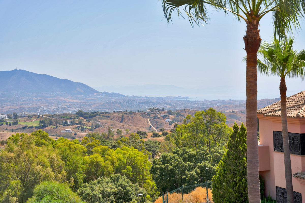The duplex penthouse home has one of the best positions within what is a large and popular residential complex. Built on the undulating hillsides of upper Elviria, the community uses authentic Andalusian architecture to create a beautiful environment comprising of pretty paved walkways, Moorish-style water features and stunning Mediterranean gardens. The community is wonderful for those who wish to benefit from walking within the coasts natural landscape, with incredible views down through the valley of la Cala de Mijas to the sea and the impressive mountains leading all the way up the coast as far as Sierra Nevada. In the winter the snow on the peaks of the famous ski resort can be seen from the property.