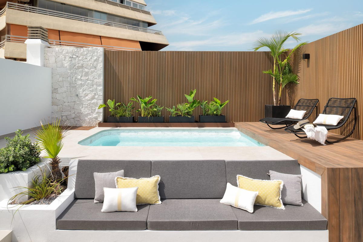 A unique duplex penthouse situated in the lively centre of Marbella and is only a pleasant three-minute stroll from the beach. This fully furnished property, which spans 300 square meters and features three bedrooms and three perfectly finely finished bathrooms, is a craftwork of detail and finest quality of materials.