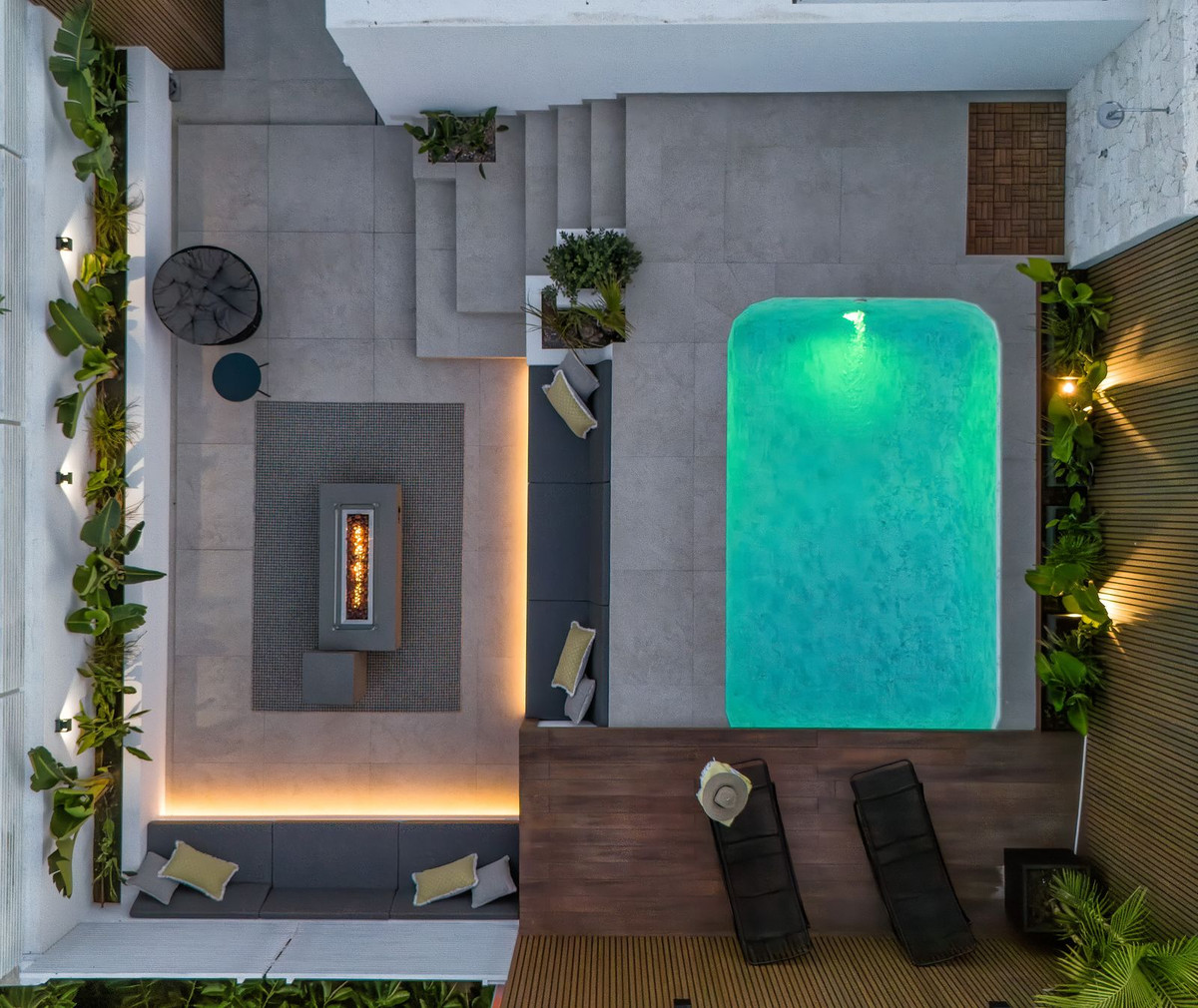 The penthouse’s crowning feature is its private rooftop terrace, where a sparkling pool awaits, complete with a cozy fireplace and a state-of-the-art barbecue area. Whether you’re hosting an intimate gathering or enjoying a quiet evening under the stars, this space is your personal paradise.