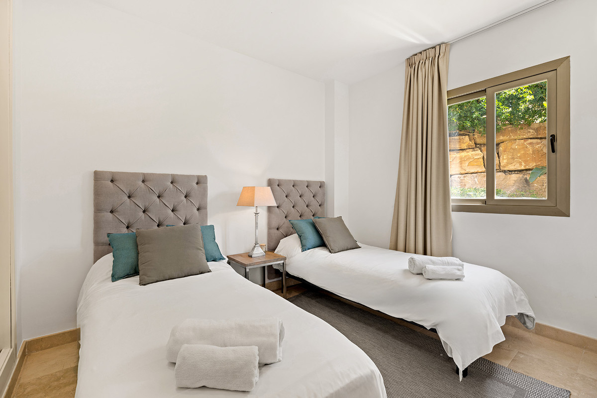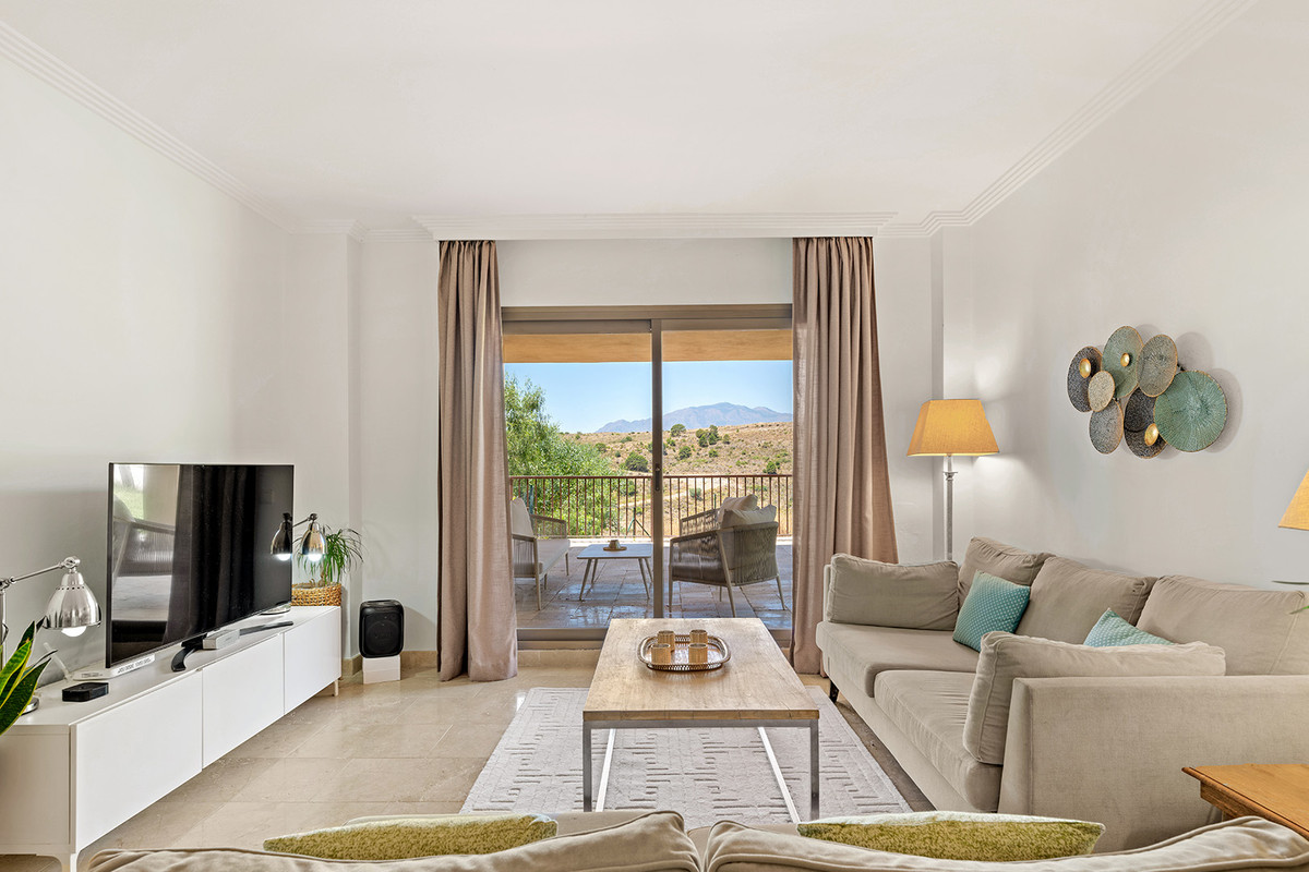 Located in the prestigious Hacienda Señorío de Cifuentes, this stunning apartment offers the perfect balance of luxury, comfort, and nature. Surrounded by magnificent golf courses and the beautifully maintained gardens of the development, it is the ideal home for those seeking a peaceful retreat in an exclusive setting, without giving up the convenience of nearby amenities.The property features three bright bedrooms and two bathrooms, and has been thoughtfully designed to provide a comfortable and elegant living experience. The west-facing living room is spacious and inviting, opening onto a spectacular L-shaped terrace that is both large and very private, perfect for soaking up the sun, unwinding, or enjoying special moments with family and friends. From the terrace, you can enjoy partial sea views and beautiful mountain views, enhancing the sense of peace and connection with the natural surroundings.The separate, fully equipped kitchen offers a functional and stylish space, ideal for those who enjoy cooking. In addition, the apartment is fitted with air conditioning and underfloor heating throughout, ensuring maximum comfort all year round.The gated community is safe and impeccably maintained, with 24-hour security, expansive landscaped areas, and four swimming pools, including a striking infinity pool that blends seamlessly with the horizon, creating a truly unique atmosphere of relaxation.Just an 8-minute drive from supermarkets, pharmacies, and restaurants, and only 15 minutes from San Pedro, with Marbella and Estepona just 25 minutes away, this property boasts an unbeatable location for those looking to combine tranquility, natural beauty, and proximity to the vibrant lifestyle of the Costa del Sol.Come and discover it. Let yourself be captivated by its beauty, its light, and its charm!The abbreviated information document is available to you. Expenses: Taxes (ITP or VAT+AJD) + Notarial and registration expenses.ALA