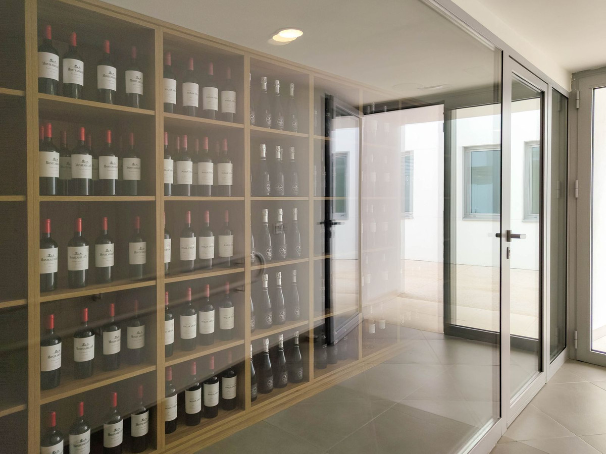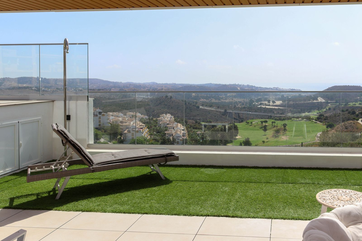 The open-plan kitchen – with sea views – flows seamlessly into the living area and lounge, creating an ideal environment for entertaining and interacting. Equipped with state-of-the-art appliances and a smart layout, this kitchen is a space where functionality meets modern design. From here, you can access the extra-large terrace, which offers panoramic views of the sea, golf, and mountains and is perfect for al fresco dining, relaxing in the sun, or enjoying the scenery. The covered section of the terrace has been enclosed with Lumon glass curtains, making it a versatile space to be enjoyed comfortably throughout the year, while still preserving the open views and natural light.