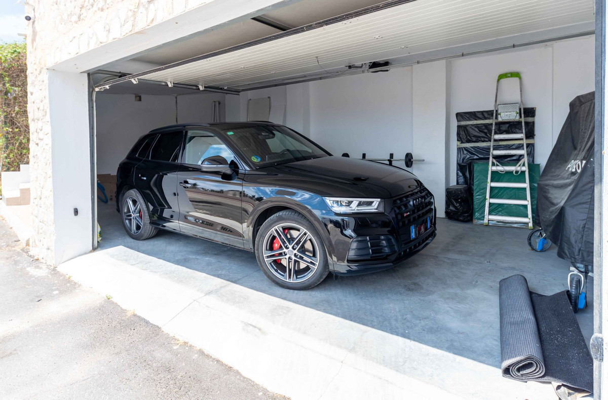 Large private garage for 2 cars and storage space. Furthermore the gated driveway offers space for at least 2 more cars.