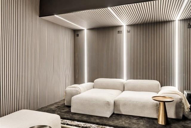 Le sous-sol complète l'offre de vie avec un deuxième salon avec kitchenette, une salle de cinéma privée, une salle de sport ultramoderne avec hammam et douche, ainsi qu'une buanderie. Les salles de bains offrent des finitions haut de gamme, avec des robinetteries Gessi raffinées et du carrelage en porcelaine italienne grand format.