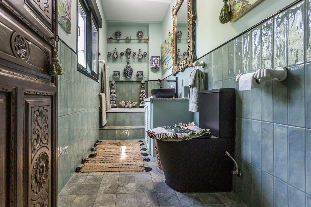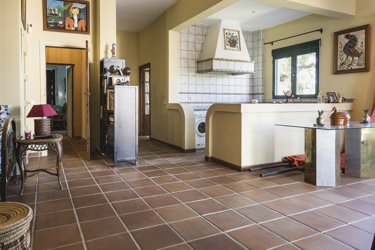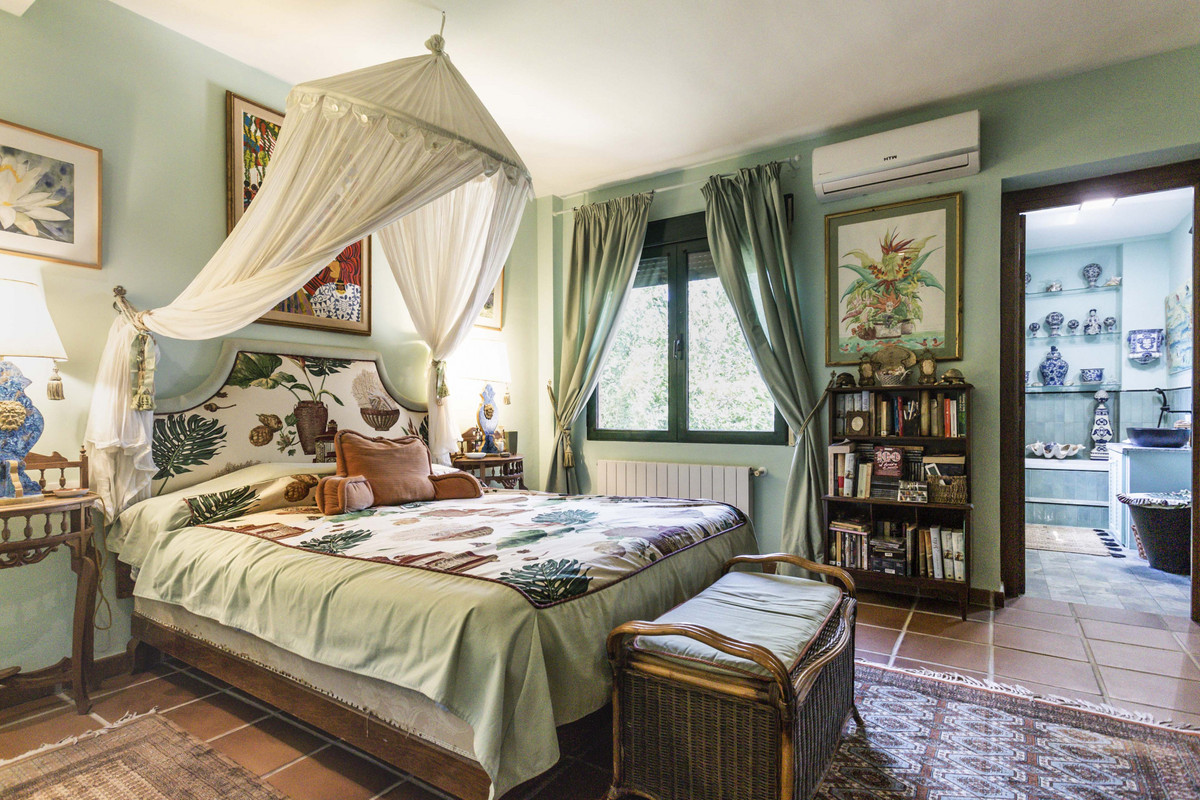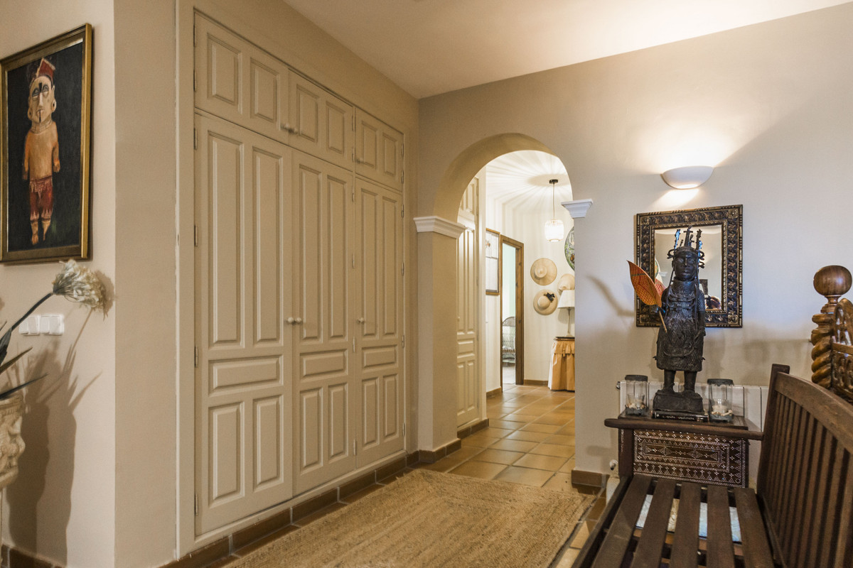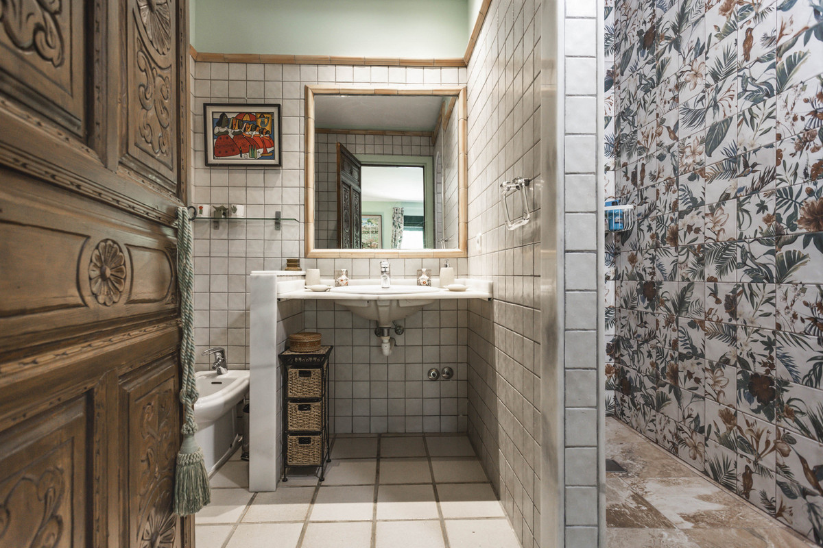 Detached two-story villa in the coastal area of Sotogrande. On the first floor, we find a spacious entrance hall leading to 3 large bedrooms, a kitchen, and a living room. The bedrooms have en-suite bathrooms, while another is located in the hallway. The kitchen has a pantry and a separate toilet. The bright living room opens onto a spacious L-shaped porch, which overlooks the garden and a gazebo with views of the pool and the mountains. From the entrance hall, there is also access to the lower floor, a separate area with 2 bedrooms and 2 bathrooms, as well as a kitchenette integrated into a living area with a fireplace. This floor is ideal as an independent apartment, as it also has access through the garden or garage (with capacity for 4 cars). The garden has a charming and modern bathroom with a shower, perfect for use when swimming in the pool. Air conditioning and central heating are available. The property is conveniently located, a 5-minute drive from supermarkets and the Paniagua shopping center, and is also a very quiet area. The property was partially renovated in 2024.