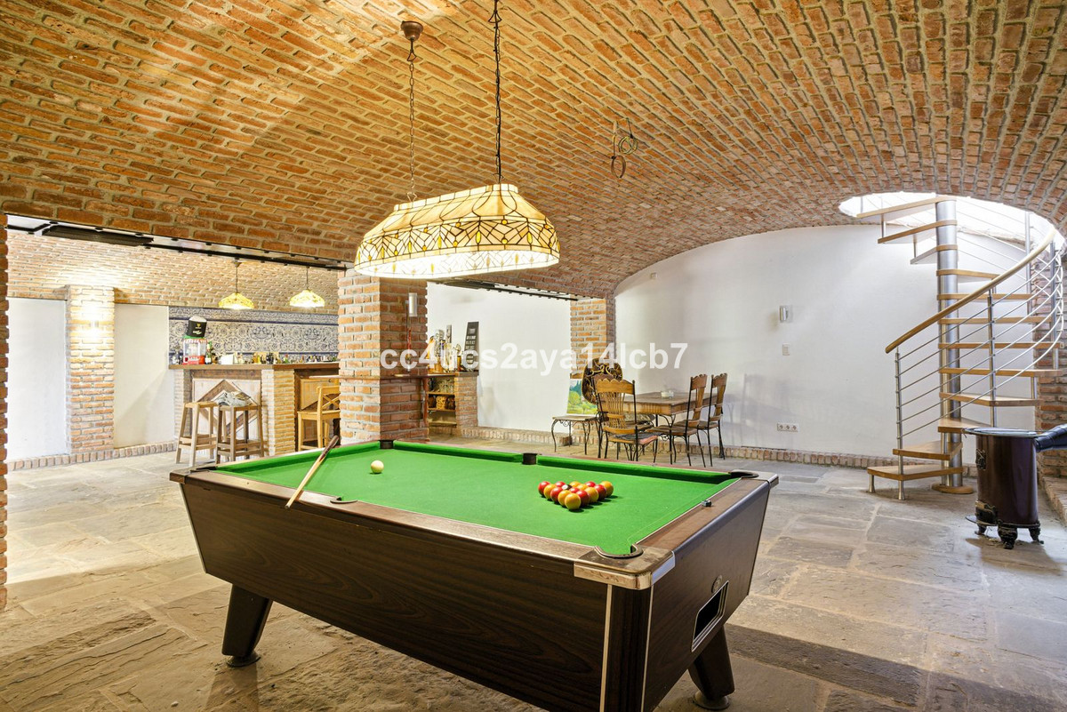 The basement level of the home is exceptionally unique for a Spanish property. It includes a fully equipped bar, pool table, utility room, gym area, and a separate room with shower and toilet, which could serve as an additional bedroom. One of the standout features is the cinema room, all finished with remarkable historical touches including 500-year-old Tudor bricks and flooring salvaged from a traditional cotton mill.