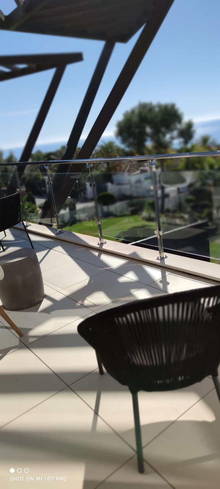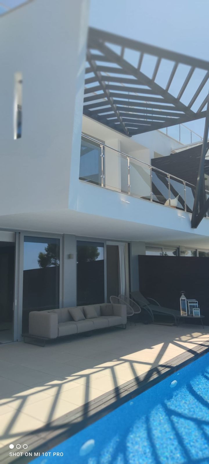 3 bedrooms and 3 en suite bathrooms plus 1 guest toilet, It has sea views from the ground floor, first floor and the solarium. private garage for two cars and storage room. underfloor