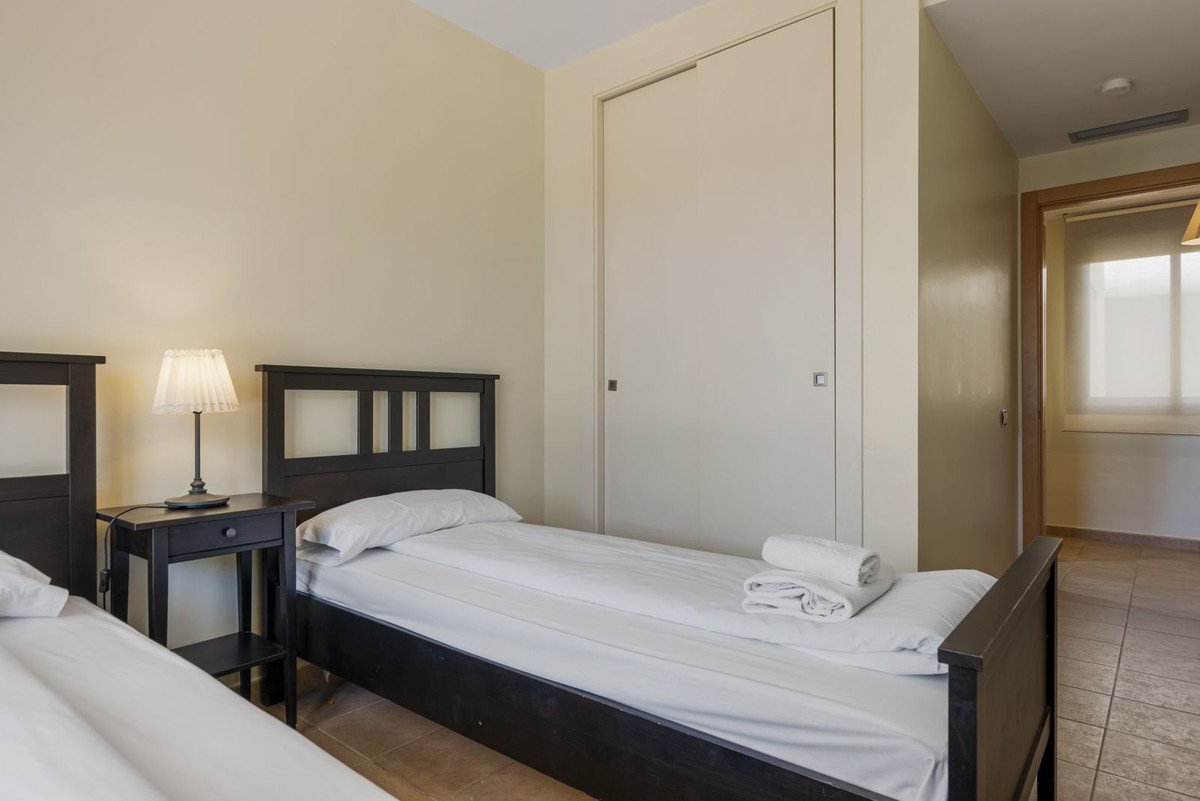 This beautiful apartment is located in the popular Alamar with walking distance to La Cala city centre and the beach. It features 2 bedrooms, 2 bathrooms, a utilityroom, a modern kitchen, a large livingroom with a sofa-bed and a large private terrace with a couple of meters to the pool. There is a padel court available for you in Alamar for free.
