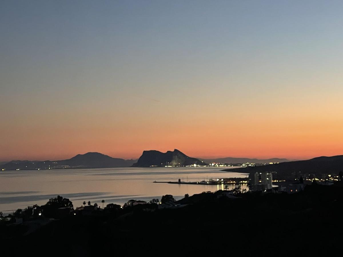 The terrace, slightly elevated to preserve the view even while seated, offers a breathtaking panorama of the Mediterranean, the Rock of Gibraltar, and the Moroccan coastline — all while maintaining privacy thanks to a discreet low wall.