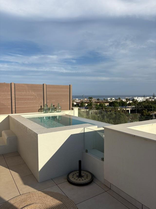 Appartement au dernier étage, Proche de la plage, meublé: négociable, cuisine équipée, parking: Underground parking, piscine: communautaire et privé, jardin: Communauté avec piscine, orientation Sud et Ouest