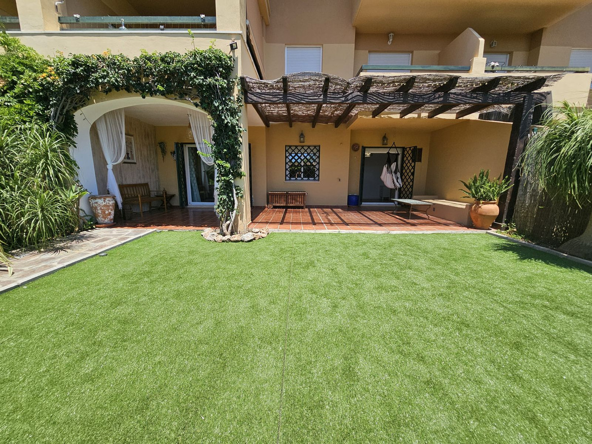 This fantastic 2 bedroom apartment has the most amazing outdoor space, with covered terrace and an extremely large private garden with BBQ area, pergola and direct access to the pool, padel court and children's playground. This property is located in the Selwo area of Estepona, close to Resina Golf, the new Padel Sports Club and the American School. The apartment itself is a ground floor property with a south facing orientation ensuring sun all day. There are 2 bedrooms and 2 bathrooms. The master bedroom has an ensuite bathroom with dressing area plus direct access to the covered terrace and garden. The kitchen has been extended to include a butler's kitchen with direct access to a second terrace. The sitting room/dining room is bright with plenty of natural light and leads straight out on to the fantastic terrace and garden. There is hot and cold A/C throughout the apartment. One underground parking space is included in the price and a lift takes you from the apartment door down to the garage level. There is plenty of parking on the street for guests or for those with more than 1 car.