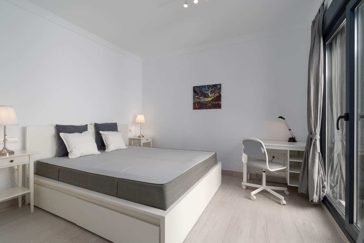 The property is sold fully furnished, including quality features such as laminated wood flooring in the bedrooms, built-in wardrobes, Mitsubishi inverter air conditioning, mosquito screens, electric metal shutters, and a water filtration system for drinking water. All bedrooms have access to private or shared terraces.