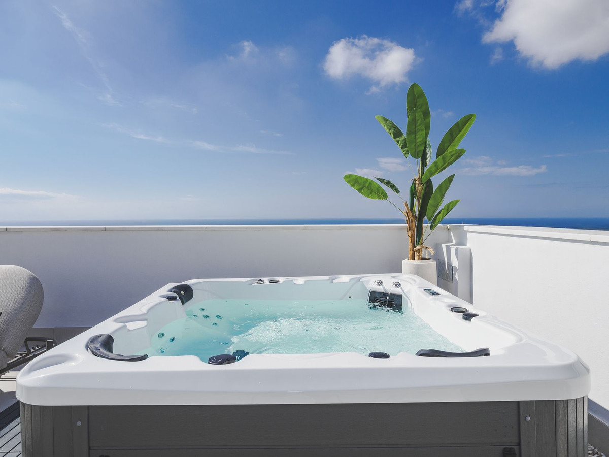 The penthouse features two spacious bedrooms, an open-plan designer kitchen integrated into a bright living-dining room. From this room, you can access the 27 m² main terrace, which in turn connects to a private solarium equipped with a barbecue and a four-person jacuzzi, ideal for enjoying the climate and views of the Costa del Sol.