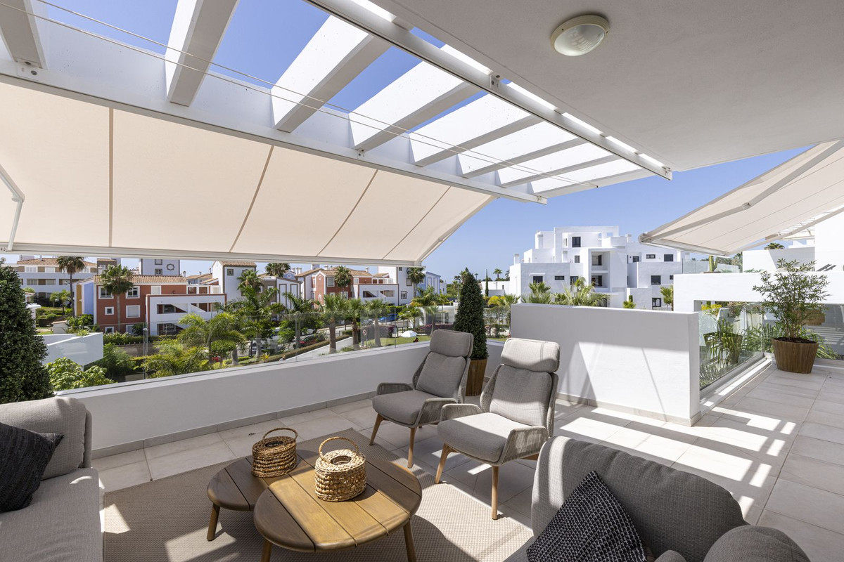 This spectacular 2-bedroom, 2-bathroom penthouse is located in the exclusive development Cortijo del Golf, in the El Paraíso area of Estepona. Situated in the heart of the New Golden Mile, this enclave combines tranquility, security, and proximity to key points of interest on the Costa del Sol, such as Puerto Banús and Marbella, just a few minutes away by car.