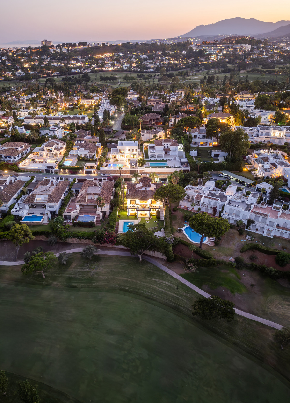 Stunning frontline golf villa with panoramic mountain views to La Concha as well as overlooking the beautiful Aloha Golf course.