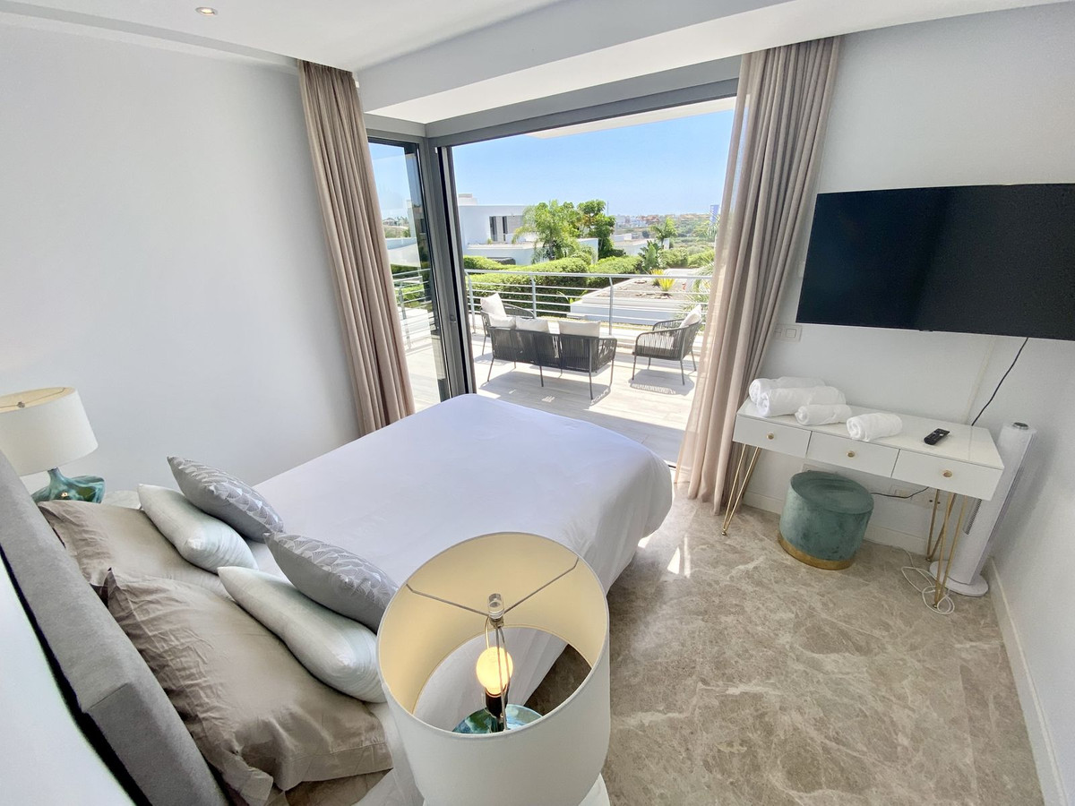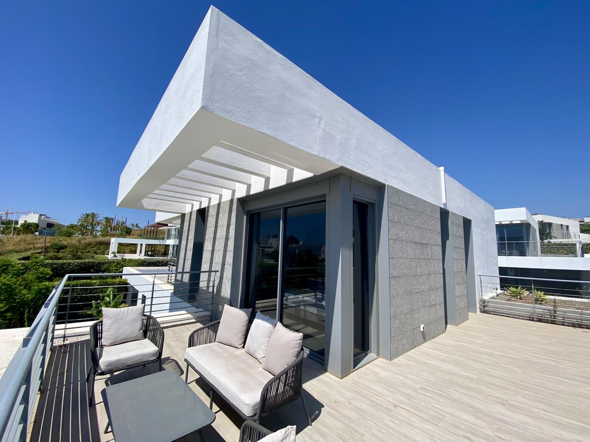 Love at first sight! Impeccable luxury detached villa in a top location. Situated between Marbella and Estepona, with the beaches of Costalita only 5mn away. The best hotel on the coast, Villa Padierna with its restaurants and 2000m2 spa, as well as some of the most renowned golf courses, are within a 5km radius. As you enter, your senses awaken to the mature and landscaped garden and entrance, brightness per the southwest orientation, and massive rooms with a practical layout. Of recent construction, the condition is perfect and no details have been left untouched. The main floor consists of an extensive living room with a large american kitchen, and an implanted living room. Direct access to a big outside space, with terrace, barbecue, chill-out areas, and the swimming pool all day in the sun. On this level, you will find a bedroom, full bathrooms, and an office space. Upstairs, more sleeping area: two double bedrooms, bathrooms, and plenty of walk-in closets. From the terrace, enjoy sea views and wonderful sunsets. Downstairs, the owners have organised a games room, gym, two further bedrooms and wash room. The garage has space for two cars. The residential area is lovely, newly built, and with easy access. A must see!