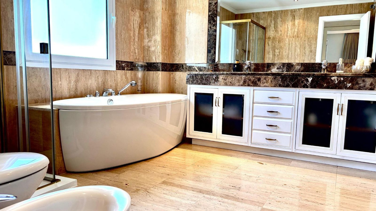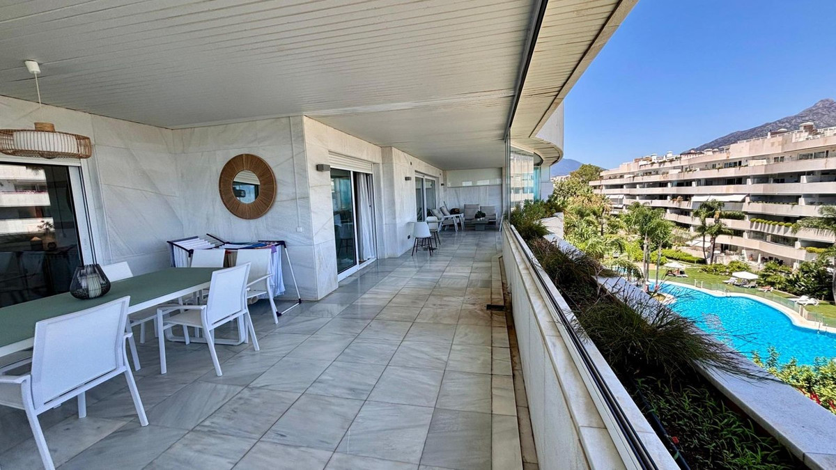 Located in the prestigious El Embrujo complex in Puerto Banús, this beautifully maintained apartment offers an exceptional blend of space, quality, and convenience just a short walk from the beach. It features three spacious bedrooms with en-suite bathrooms and a total of five bathrooms, spanning approximately 300 m² including an 49 m² terrace perfect for relaxing outdoors. Designed with high-quality finishes, it boasts generous and elegant interiors for truly comfortable living. Residents enjoy excellent amenities including an outdoor pool, a heated pool, secure parking, and a renowned on-site Middle Eastern restaurant. El Embrujo, Banús is one of the most sought-after developments in Puerto Banús, celebrated for its prime location and premium services.