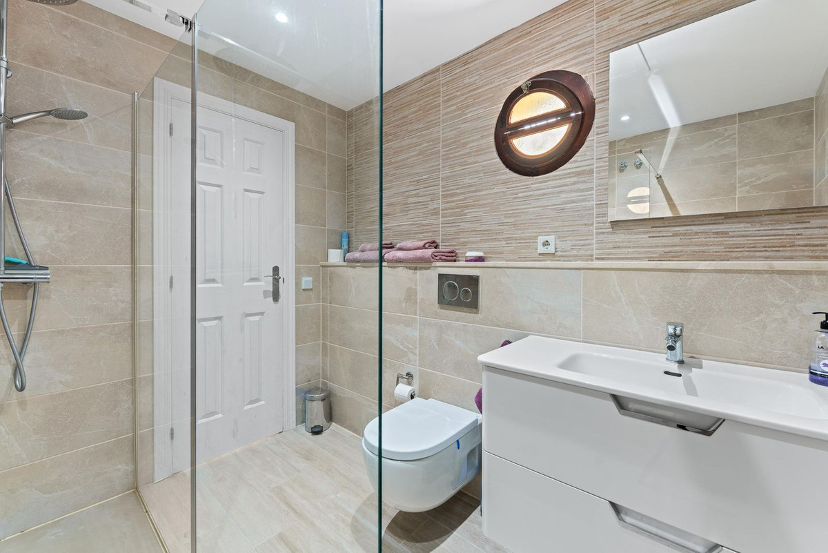 SHORT TERM RENTAL ALLOWED! Located in one of the most desirable areas of Estepona, this cozy townhouse combines comfort, style, and a privileged location. The property, in excellent condition, has a built area of 128 m² spread over two floors, with two bedrooms and two full bathrooms. On the ground floor, there is a spacious living room with an open-plan kitchen and a guest toilet, with direct access to a private terrace, perfect for enjoying the Costa del Sol climate. On the upper floor, there are two bright, exterior-facing bedrooms and two full bathrooms, including an en-suite bathroom in the master bedroom. The property includes a parking space and access to communal areas with a swimming pool and well-maintained gardens. Its location provides easy access to the beach, services, and leisure, making it ideal for both permanent residence and investment. This home offers a complete opportunity to live in a tranquil and exclusive environment, combining comfort, functionality, and rental potential in the heart of Estepona.