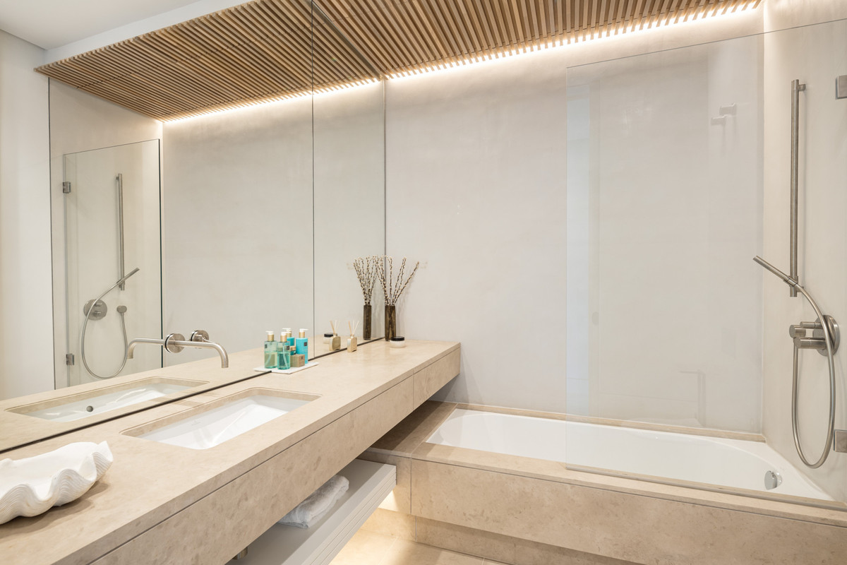 Outside, the meticulously landscaped garden surrounds a private pool and jacuzzi, inviting you to unwind in style. An outdoor chill-out area provides the perfect setting for enjoying the idyllic climate and serene views.