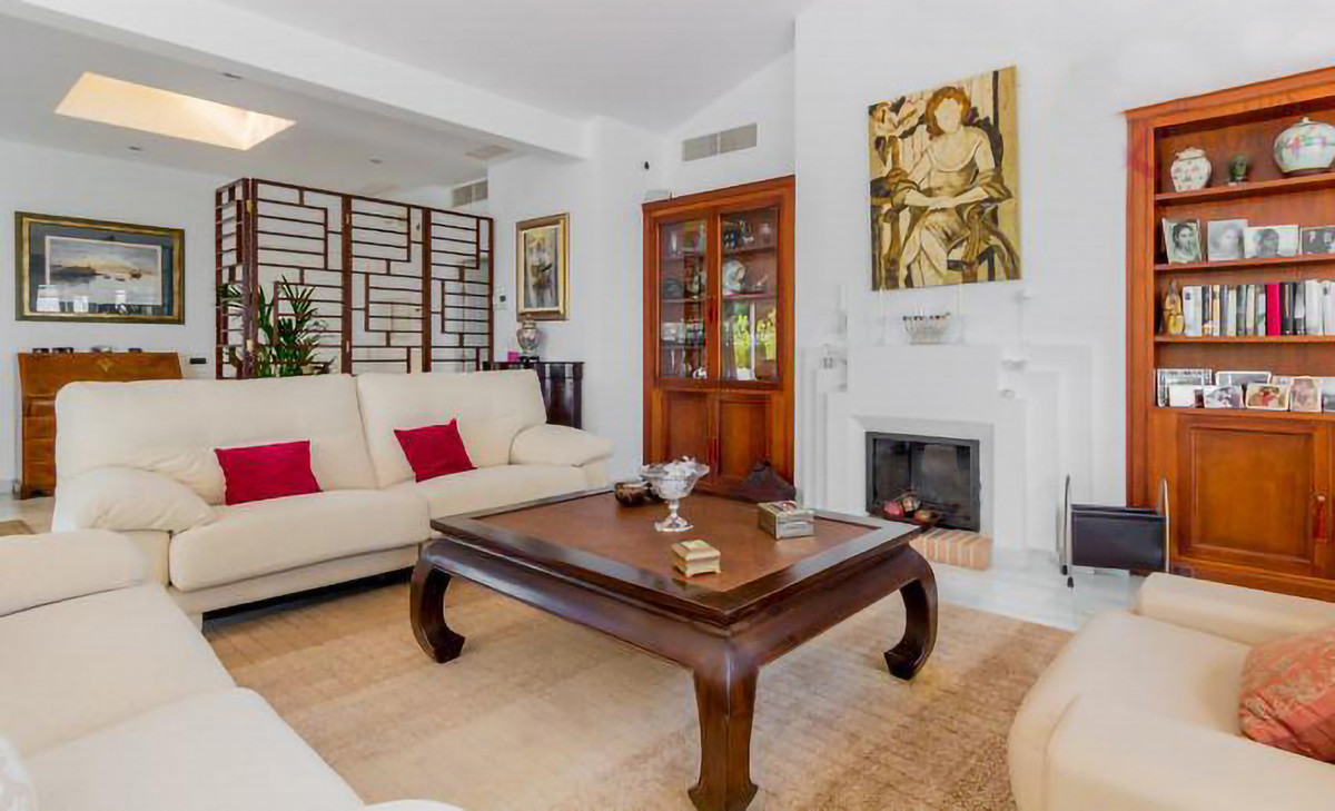 The property is accessed by a private, very safe and discreet elevator. Just enter, we find a majestic and very spacious living room with high ceilings and with several terraces that surround it. Dining room, fireplace, wooden beams, is very elegant and cozy at the same time.