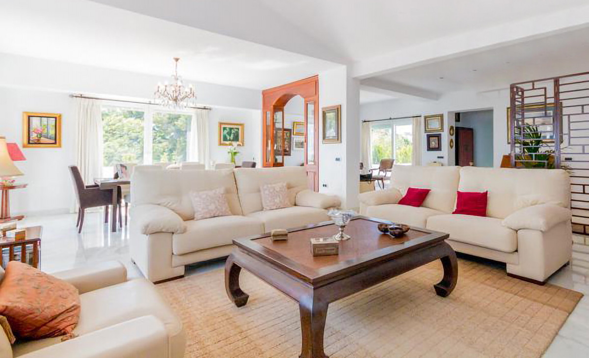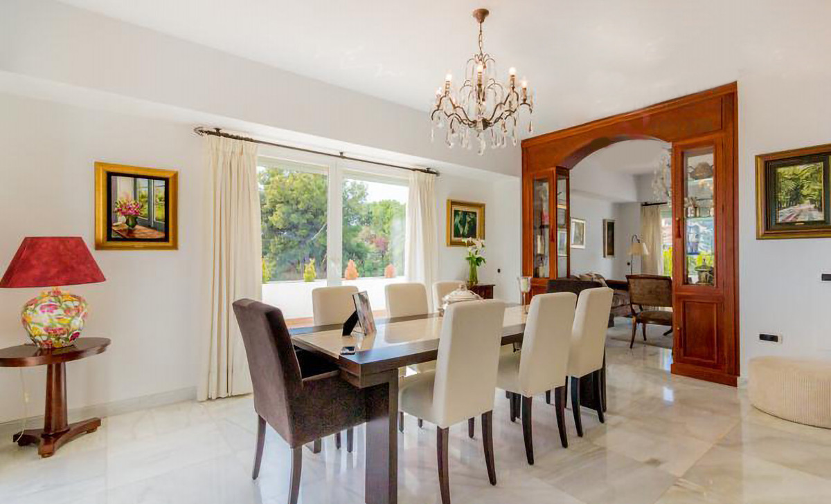 The south facing main terrace has an outdoor dining room under a beautiful colonial-style pergola and offers magical views of the Mediterranean sea and the entire bay of Malaga.