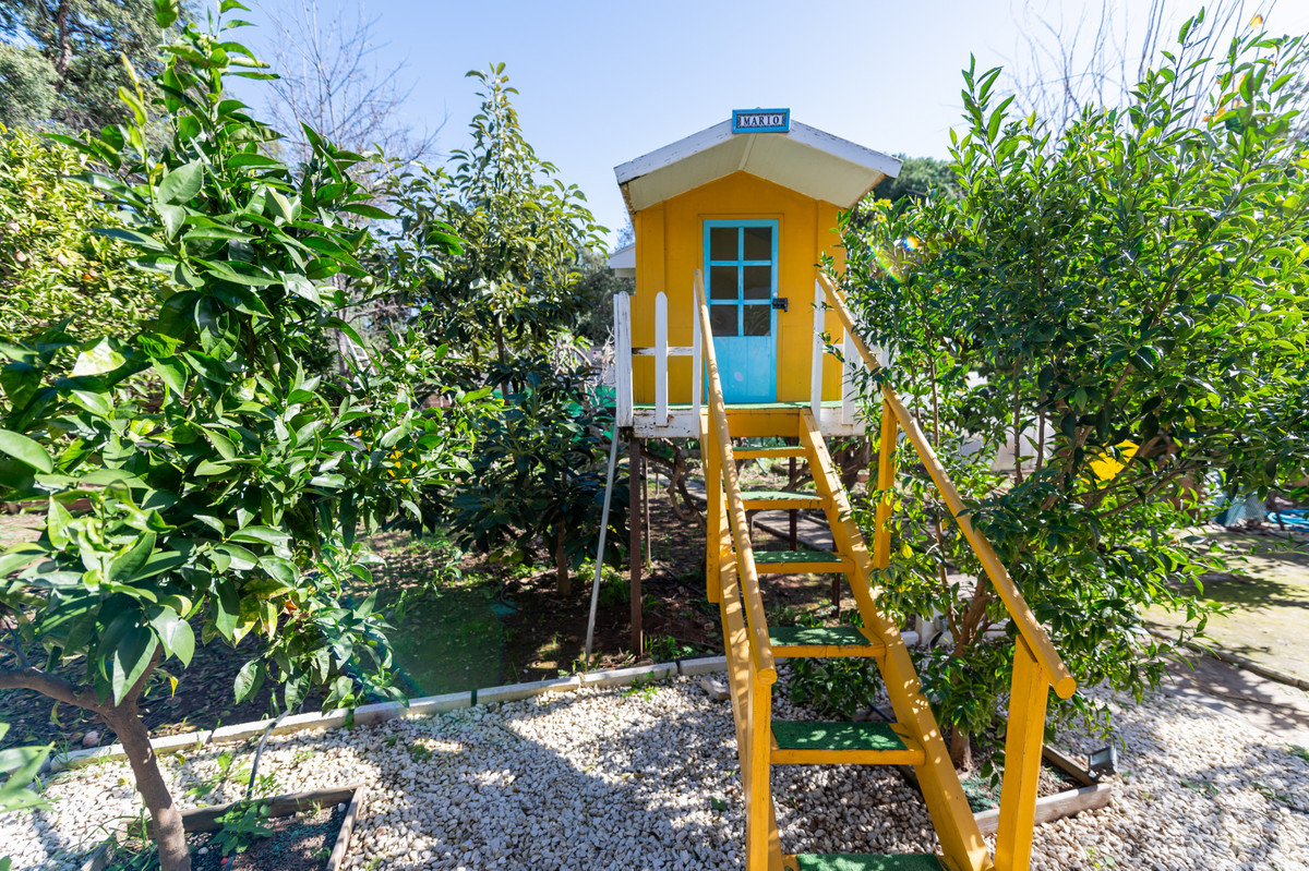 In terms of sustainability, the property is equipped with photovoltaic solar panels, a solar water heating system and its own water well, ensuring energy efficiency and cost savings. The greenhouse is an ideal addition for garden enthusiasts, while security is covered with adapted access and a specialized system. In addition, the villa includes a covered garage for two vehicles and outdoor space for at least three more.