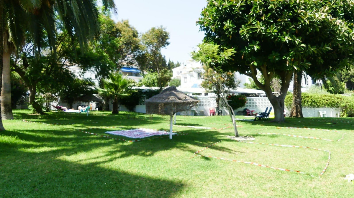 The complex features extensive communal gardens, a large swimming pool, and a sunbathing area. There is a private communal parking lot, adding convenience and value to the property.