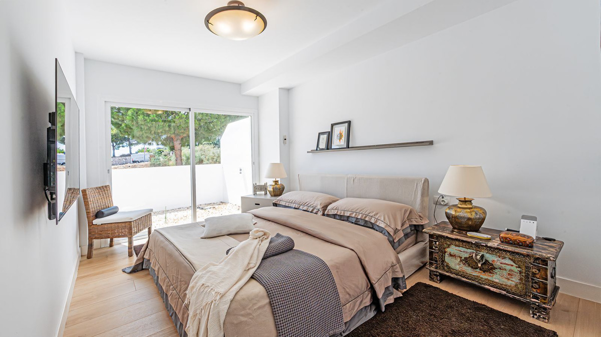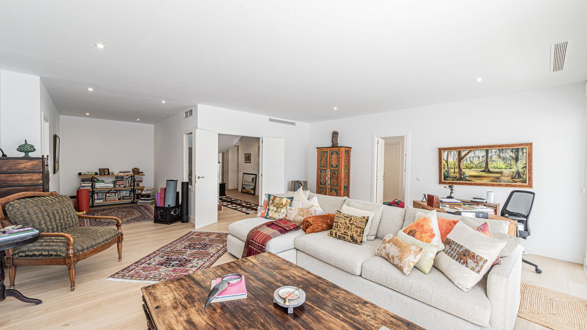 The villa is distributed over 3 levels, all connected by a private elevator. It has 4 bedrooms, all with en-suite bathrooms, plus a guest toilet. The master bedroom features a fantastic walk-in wardrobe, large terraces, a fully equipped kitchen, and a laundry room.