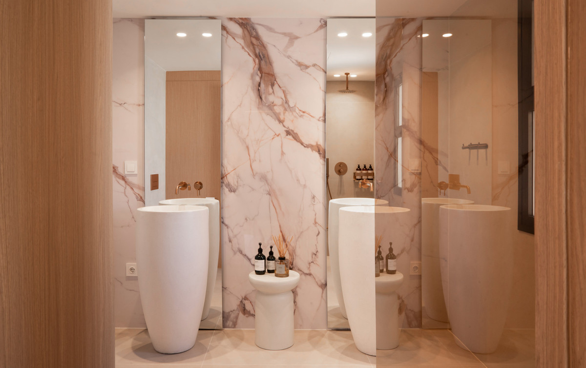 Interiors include a fully equipped, open-plan kitchen flowing seamlessly into the living and dining areas. Stone floors, glass doors, and abundant natural light enhance the elegant atmosphere, while central air conditioning with Airzone technology allows each room to be individually climate-controlled. Bathrooms feature underfloor heating, ensuring comfort in every detail.