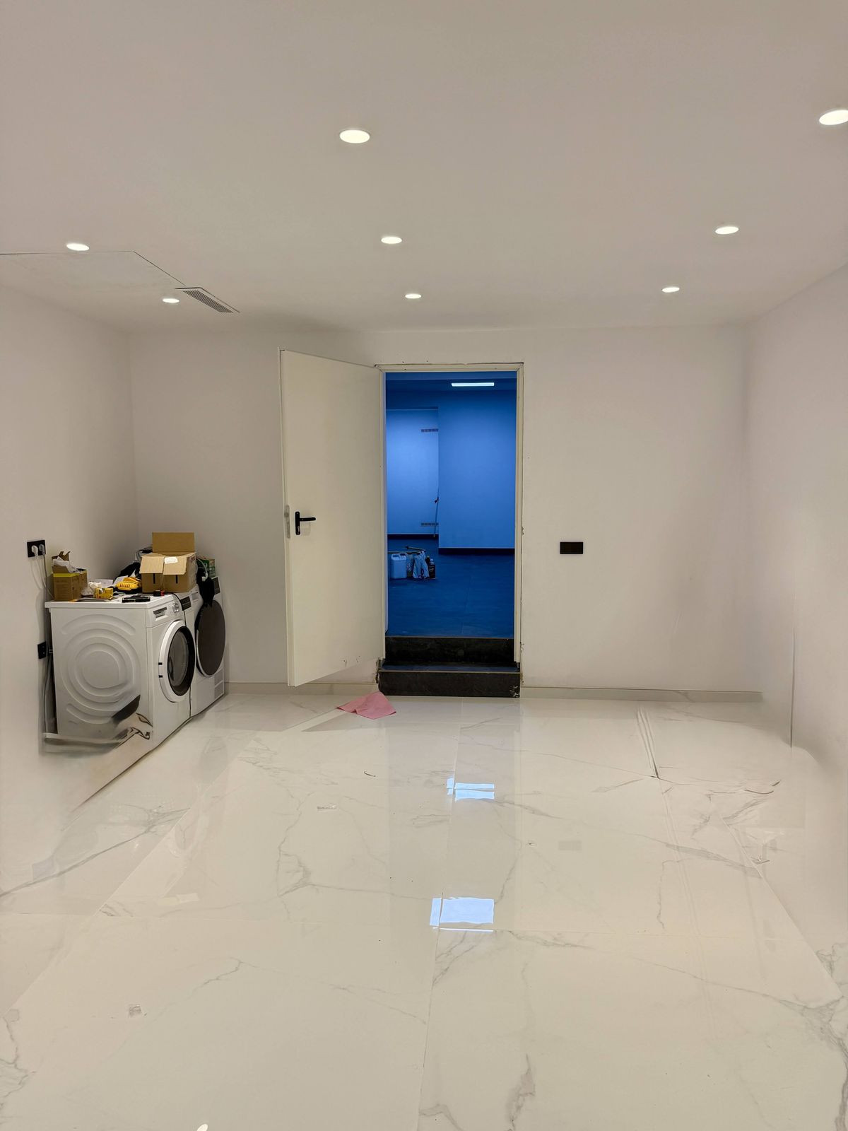 Indoors, the villa features bright, open spaces equipped with home automation, air conditioning, marble floors, jacuzzi, gym, games room, wine cellar, staff accommodation, and a fully fitted kitchen. The property is sold fully furnished with carefully selected high-end pieces.