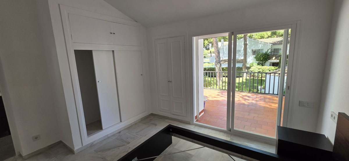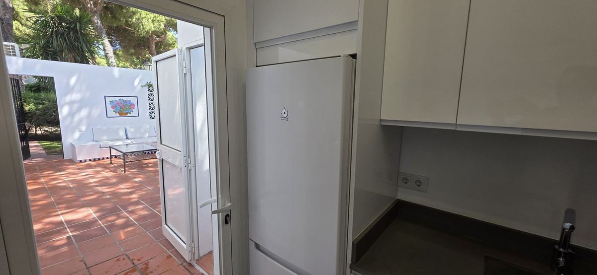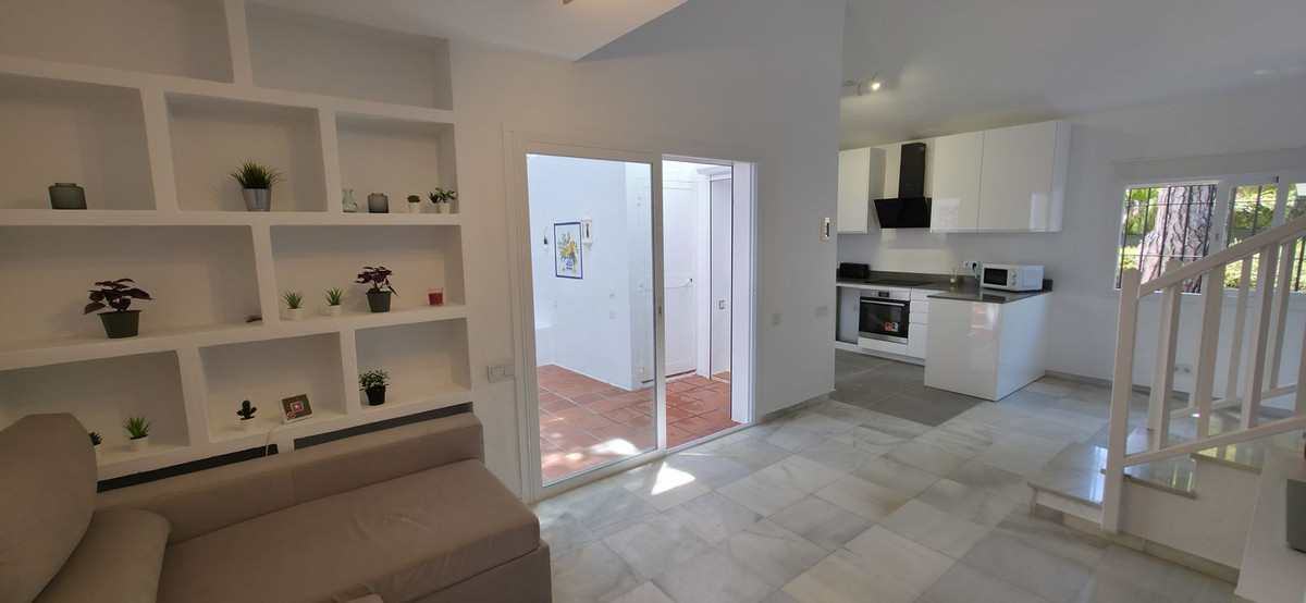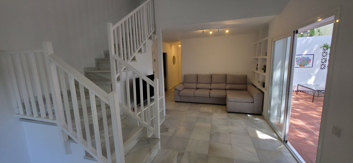 Corner Townhouse beachside between San Pedro and Estepona. Recently reformed this 4 bed 3 bath property sits in the wonderful Benamara complex walking distance to the beach. Modern brand new open plan kitchen leading to the dining and living area. 2 bedrooms on the ground floor sharing one bathroom. Large terrace with seating area and laundry room. Upstairs a further 2 bedrooms and 2 bathrooms. Master bedroom with en suite and terrace overlooking the beautiful gardens and pool area. The property has been reformed to a good standard with new electrics, air conditioning, 2 new bathrooms and new windows.