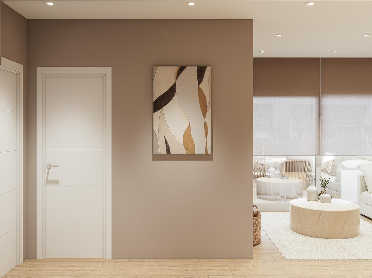 The main area of the property consists of an open-plan living room with an integrated dining area, providing a spacious and bright atmosphere. The parquet flooring and large windows with glass doors add warmth and light to the space. The kitchen, fully equipped and designed in an open-plan style with a peninsula, is integrated into the social area, facilitating interaction and optimal use of space. From the living room, there is access to a balcony-style terrace of approximately 7m², ideal for enjoying the side sea views and the Costa del Sol climate.