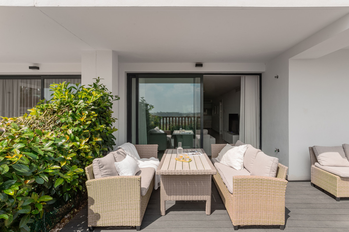 Welcome to your dream getaway!Located on the ground floor of the prestigious Casa Banderas complex, this modern 3-bedroom, 2-bathroom apartment offers the perfect blend of comfort, style, and investment potential. Built in 2020, this property is one of the largest ones in Casa Banderas urbanisation. It features a private decked 56m² terrace with unobstructed views—ideal for relaxing mornings or serene evenings.Inside, the open-plan layout combines a fully equipped kitchen, dining area, and bright living room with direct terrace access through elegant sliding doors. The property also includes three generous bedrooms and two sleek bathrooms with spacious showers and underfloor heating, all designed for convenience and comfort.Casa Banderas provides far more than just a home—it offers a resort lifestyle with exclusive amenities, including:- Spa & fully equipped gym- Heated indoor pool & multiple outdoor swimming pools- Coworking and social area- BBQ area & landscaped gardens- Padel court, children’s playground, sauna & wellness facilitiesThis property also comes with private parking and a large storage room included in the price, ensuring practicality alongside luxury.The location is unbeatable: within walking distance to La Cala de Mijas, with its sandy beaches, restaurants, and boutique shops. With excellent connections—30km from Málaga Airport, 10km from Fuengirola and19km from Marbella —the apartment offers both tranquility and accessibility.Beyond lifestyle appeal, this property represents a secure investment opportunity. Thanks to its prime location and resort-style amenities, it offers strong rental potential year-round, making it ideal for owners who wish to generate income when not using the property themselves.