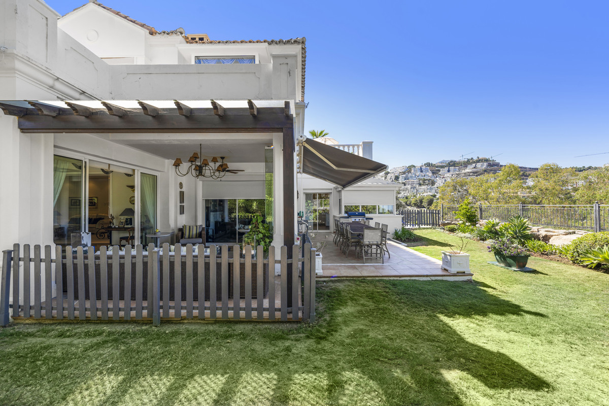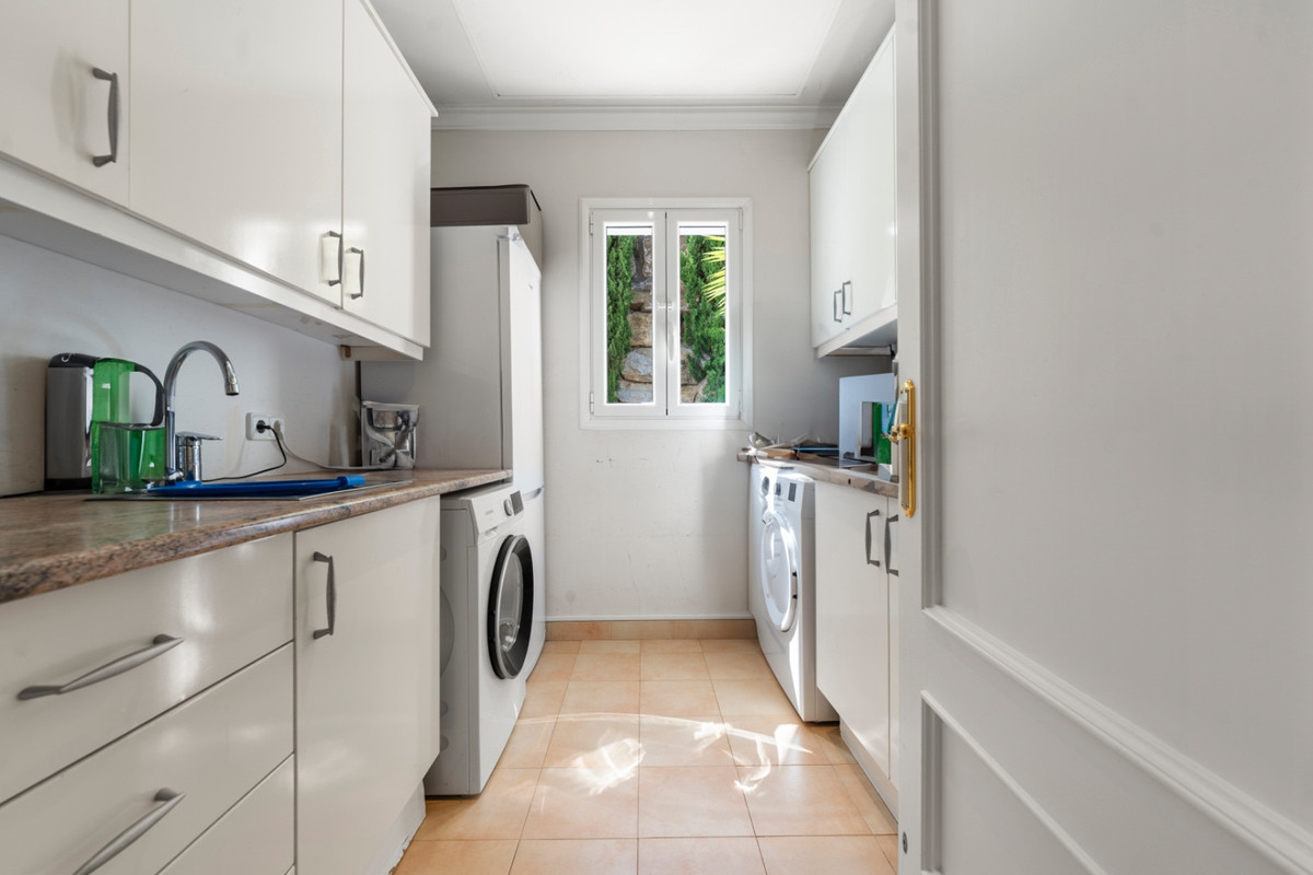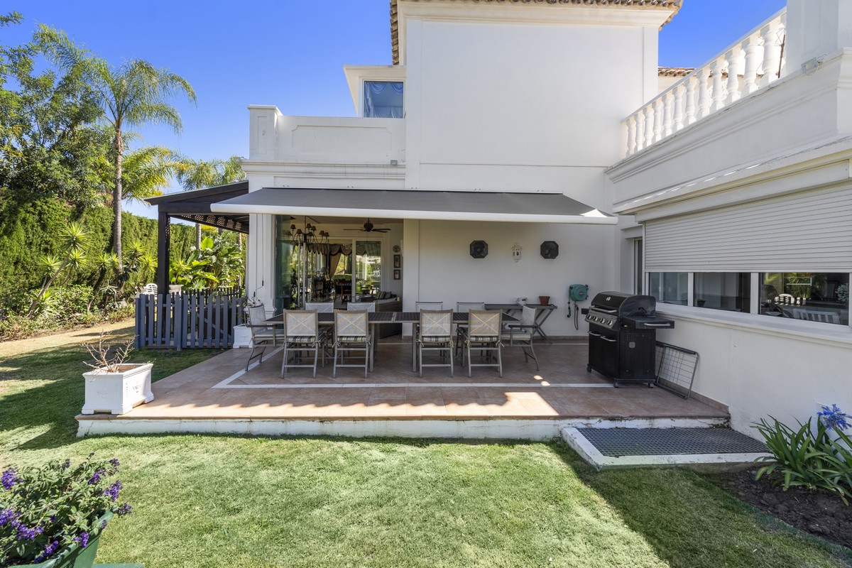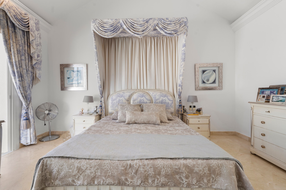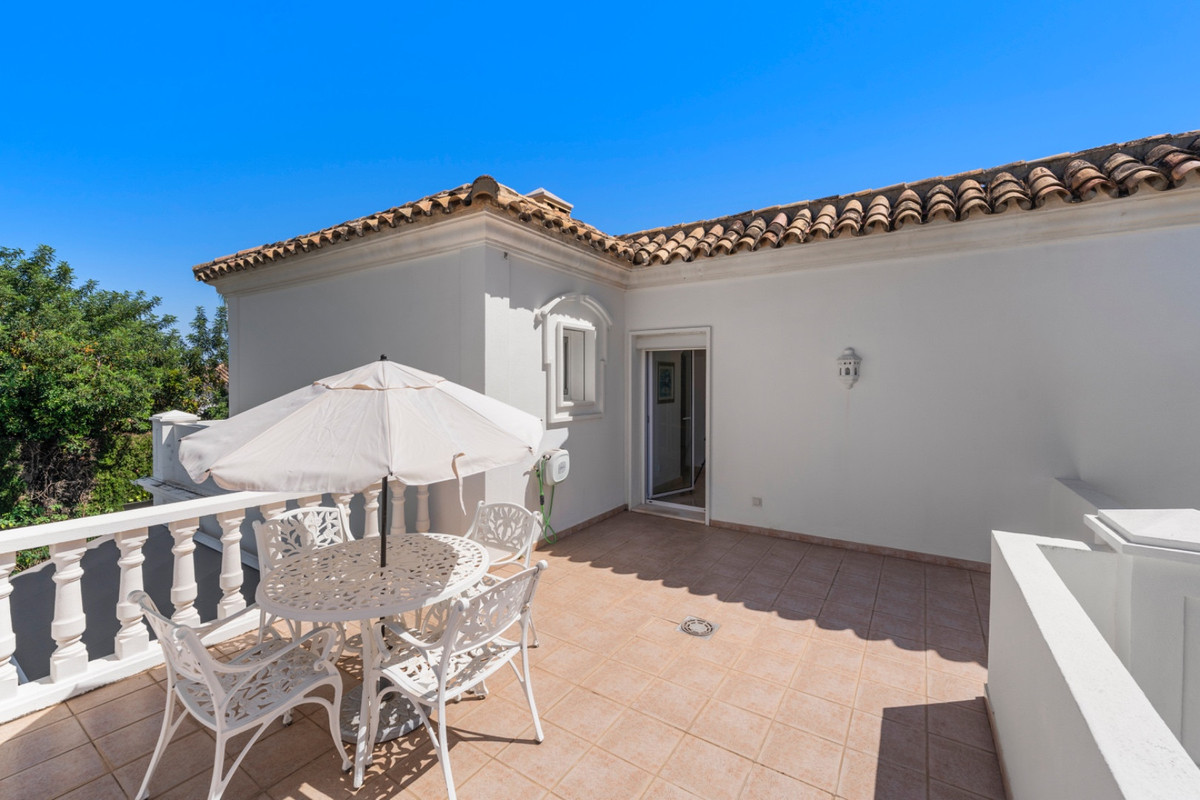 Villa Alto sits proudly within one of the coast’s most exclusive gated communities, surrounded by a world-class golf course and protected by 24-hour security. This elegant five-bedroom villa combines privacy, space, and style across three levels, offering panoramic views of La Concha mountain and the lush golf valley.