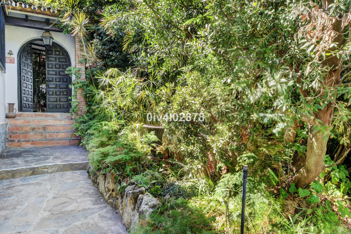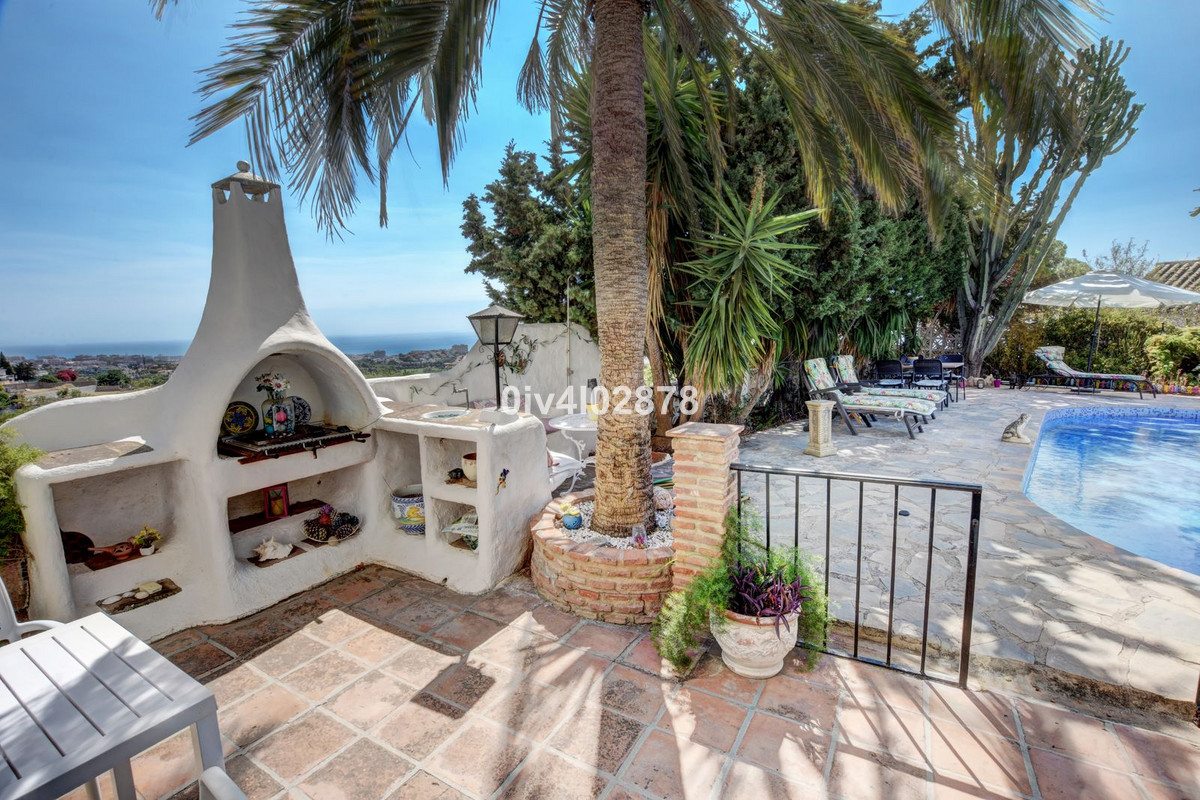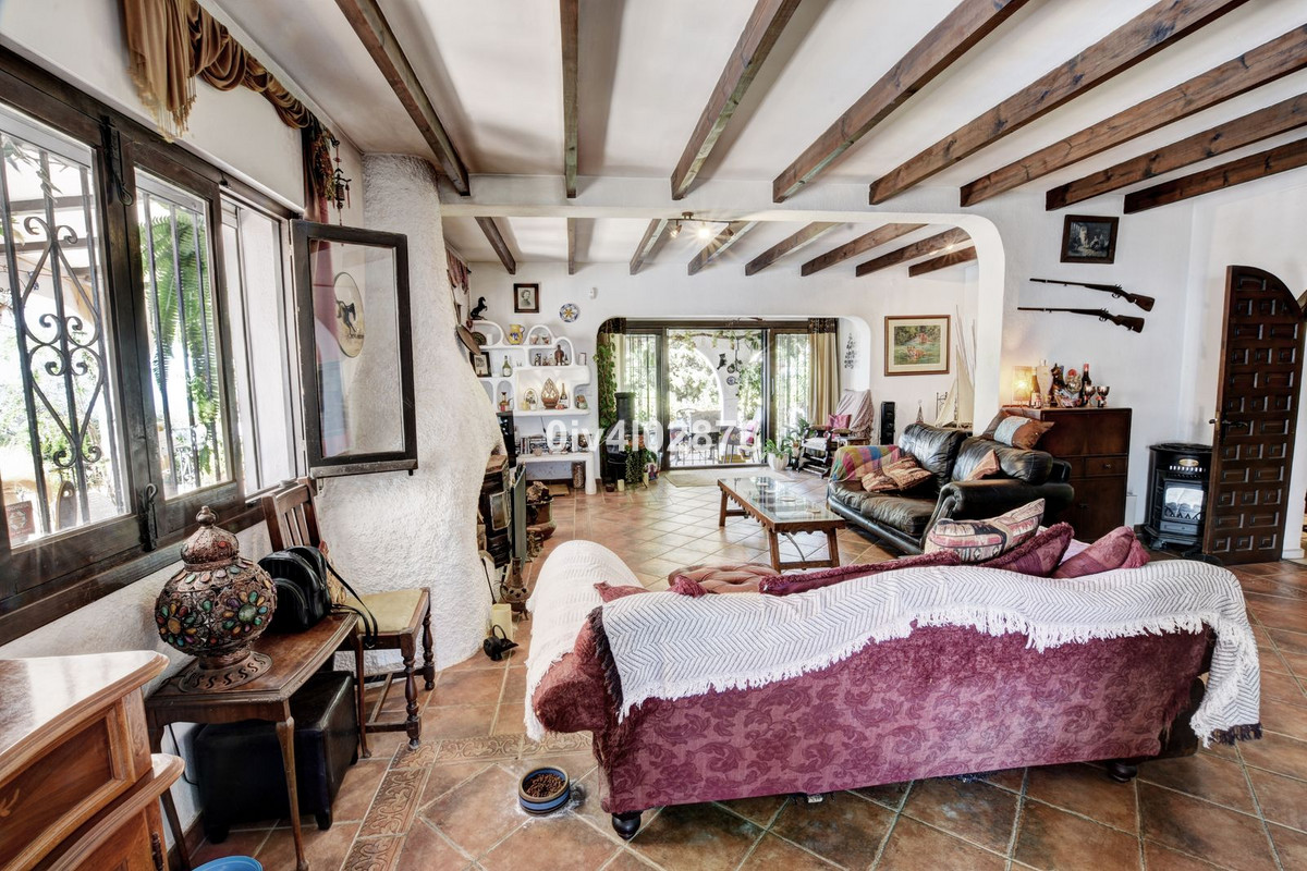 Nestled in an exceptional location that perfectly marries tranquil countryside living with the convenience of village life, this charming Andalusian-style villa is a true gem. Situated on a raised point with a serene, elevated position, the property offers stunning sea views towards Fuengirola, with the potential for panoramic views from various vantage points. The lush, mature trees and beautifully maintained bushes envelop the home, providing both privacy and a timeless character that is truly captivating.