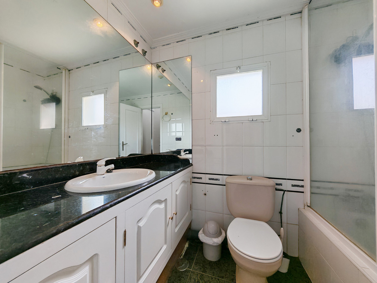 Semi Detached House for sale in , Mijas Costa with 3 bedrooms, 2 bathrooms, 1 toilet and with orientation south, with communal swimming pool and communal garden. Regarding property dimensions, it has 147 m² built, 104.4 m² plot, 74.4 m² interior and 73 m² terrace. Has the following facilities amenities near, transport near, air conditioning, fully fitted kitchen, fireplace, guest room, solarium, guest toilet, private terrace, sea view, bars, fitted wardrobes, gated community, garden view, pool view, tennis / paddle court, street view, close to children playground, close to sea / beach, close to golf, balcony, good condition, renovation needed, urban view, close to shops, close to schools, guest apartment, roof terrace and close to restaurants.