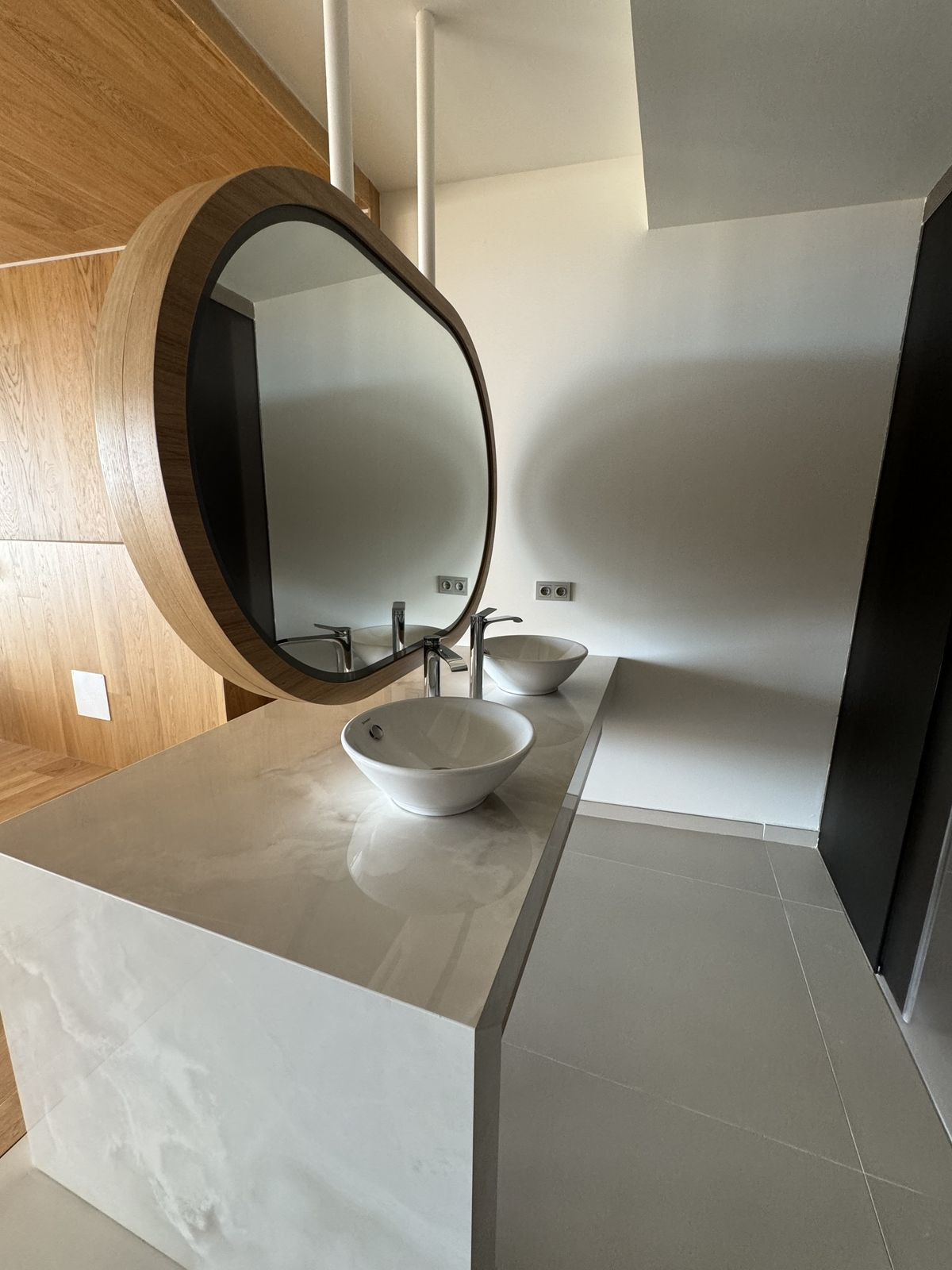 The apartment is located in a peaceful, green neighborhood, situated on a hill, which ensures complete privacy and stunning views. Despite the tranquil setting, the area is well-connected — close to public transport, shops, restaurants, and recreational areas. The beach is just 1 km away.